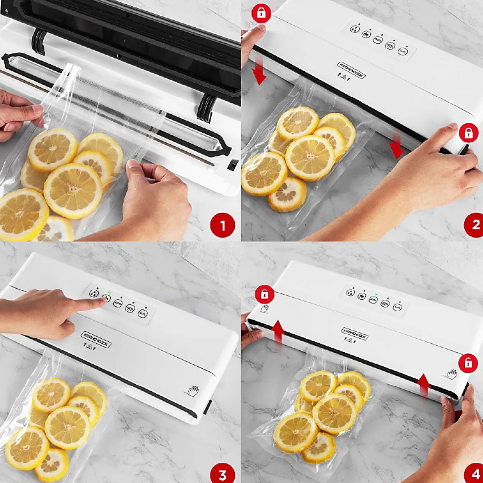 - La machine sous vide AIRPROTECT300 de Kitchencook vous permet une conservation hermétique et étanche des aliments et la présentation de leurs saveurs.