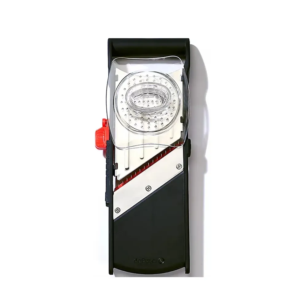 Mandoline ultra-compact De Buyer – Coupe-légumes ultra-compact 2018.00 de BuyerCoupe-légumes ultra-compact avec une lame horizontale intégrée et 2 peignes Julienne 2 et 4 mm. Pour la réalisation de tranches, rondelles et Julienne. Hauteur de coupe de 0 à 5 mm. Graduation pour un réglage facile.Efficace : tranchant parfait grâce à l’angle angle à 35°. Coupe sûre sans risque de coupure grâce au poussoir protecteur ergonomique en plastique transparent , les picots maintiennent le produit lors de la coupe.Compacte : la boîte de rangement des 2 peignes Julienne et le poussoir se clipsent au dos du coupe-légumes pour le rangement. – Type de produit : Coupe-légumes.Matière de la lame : Inox.Matière du manche : Plastique.Particularité : Facile à nettoyer.Propriété des matériaux : Adapté au lave-vaisselle.Équipement : Lames ajustables.Couleur : Noir.Dimensions : 28.5 x 11 x 4 cm.Poids (Kg) : 0.38 kg.