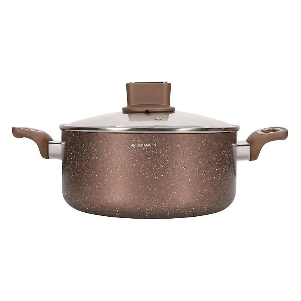 Marmite ARTHUR MARTIN AM5531 – 28 cm avec couvercle en verre : Marmite en aluminium avec revêtement antiadhérent et couvercle en verre. Compatible avec tous les feux, y compris l’induction. Parfait pour une cuisson uniforme et sans effort.