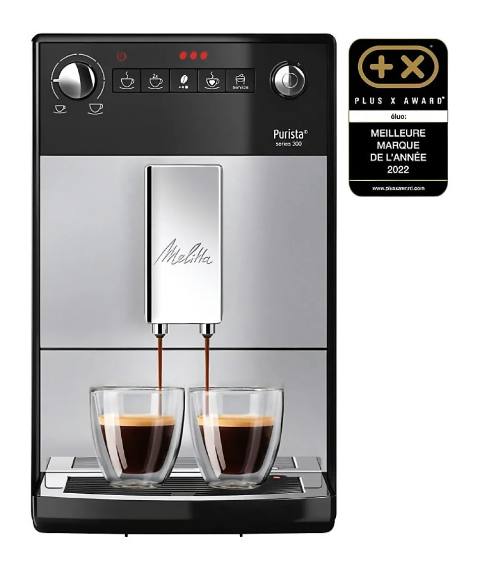 La machine a expresso automatique Purista a broyeur ultra-silencieux est compacte (20 cm de large uniquement), elle permet de paramétrer l’intensité de votre café selon vos goûts, de doux a corsé, et de faire couler jusqu’a 2 tasses simultanément grâce a son bec verseur qui s’adapte a la hauteur de vos tasses. Sa fonction café préféré: enregistre l’intensité et la quantité pour une utilisation simplifiée. La fonction