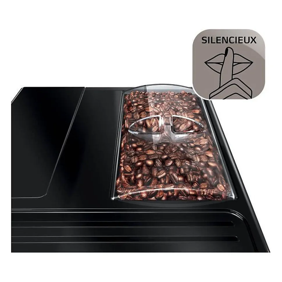 - Broyeur silencieux avec cinq réglages de mouture pour personnalisation.