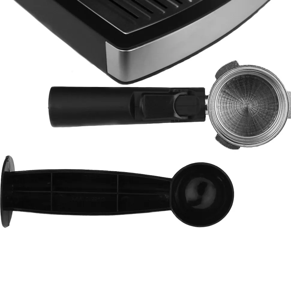 Le haut rendement de la machine (puissance de 850 W, pression de 15 bars, génération de vapeur en quelques secondes) satisfera même les utilisateurs exigeants qui n’ont pas l’intention d’attendre longtemps leur café. Grâce au mousseur à lait intégré, même préparer un cappuccino ou un latte devient vraiment facile. Il ne reste plus qu’à profiter du goût agréable et de l’arôme captivant du café.Descriptif TechniquePompe à pression puissante de 15 barsPossibilité de préparer un expresso ou un cappuccinoEau bouillante et vapeur produites en quelques secondesRéservoir d’eau amovible de 1,6 LCapacité maximale de la chaudière : 150 mlBouton avec voyants lumineux : Power, Brewing et SteamBac d’égouttage amovibleContrôle des émissions de vapeurChaudière en acier inoxydableDesign modernePuissance max. 850W…