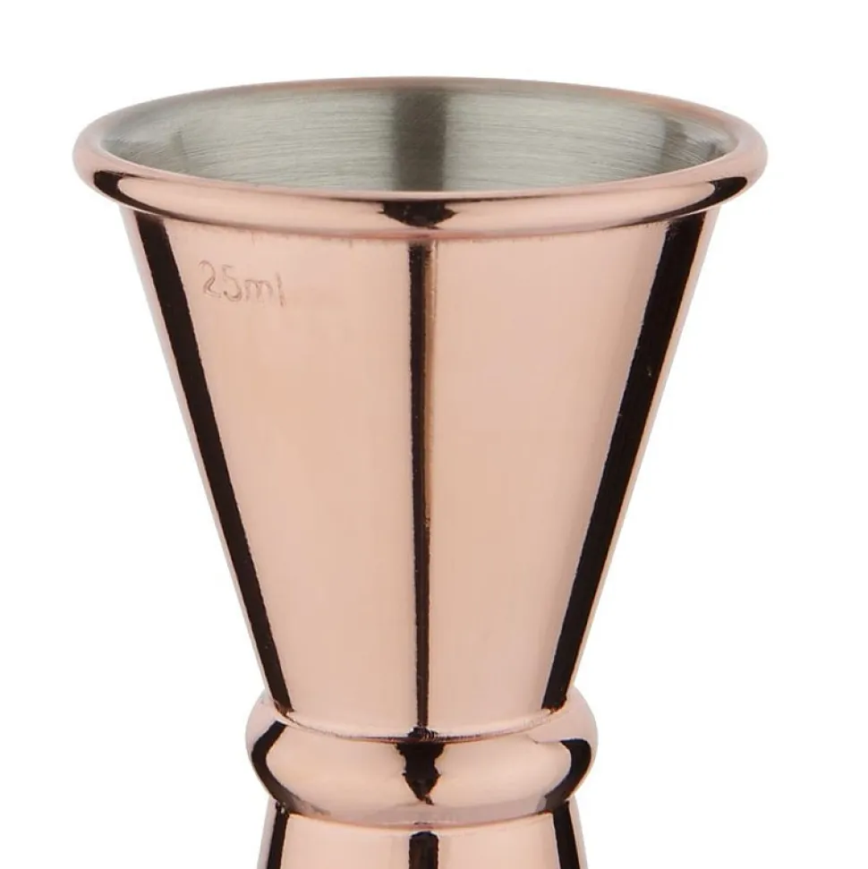 Mesure de bar conique en cuivre Chaque barman a besoin d’une mesure fiable. Cette mesure coloris cuivre offre une double mesure de 25 ou 50 ml pour servir alcools sur glace, cocktails ou boissons mélangées. Très simple à utiliser, cette mesure se pose et est clairement marquée. Cette mesure conique est recommandée pour les cocktails.Capacité: 50mLDimensions: 95(H) x 39(Ø) mmMatériel: CuivrePoids: 36 gDouble capacitéMesures de 25 ml et 50 mlStyle élégant