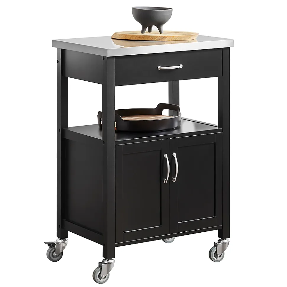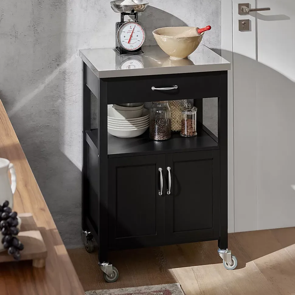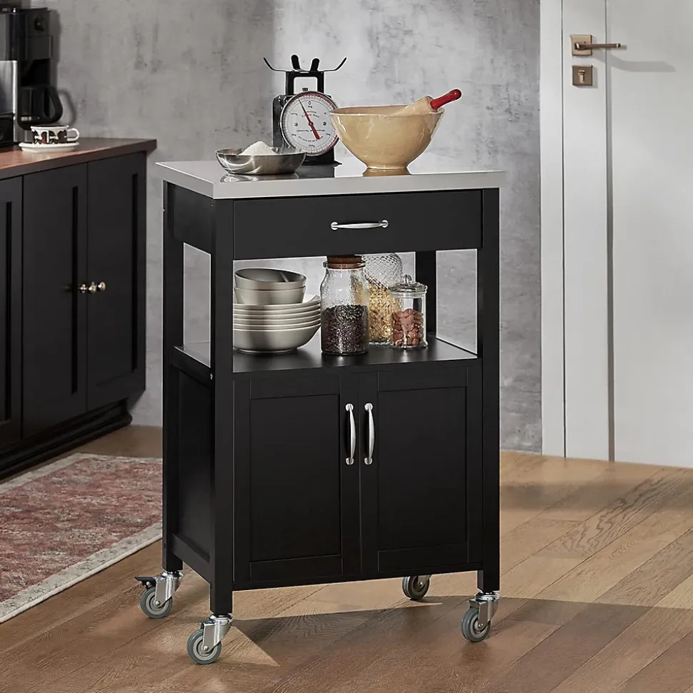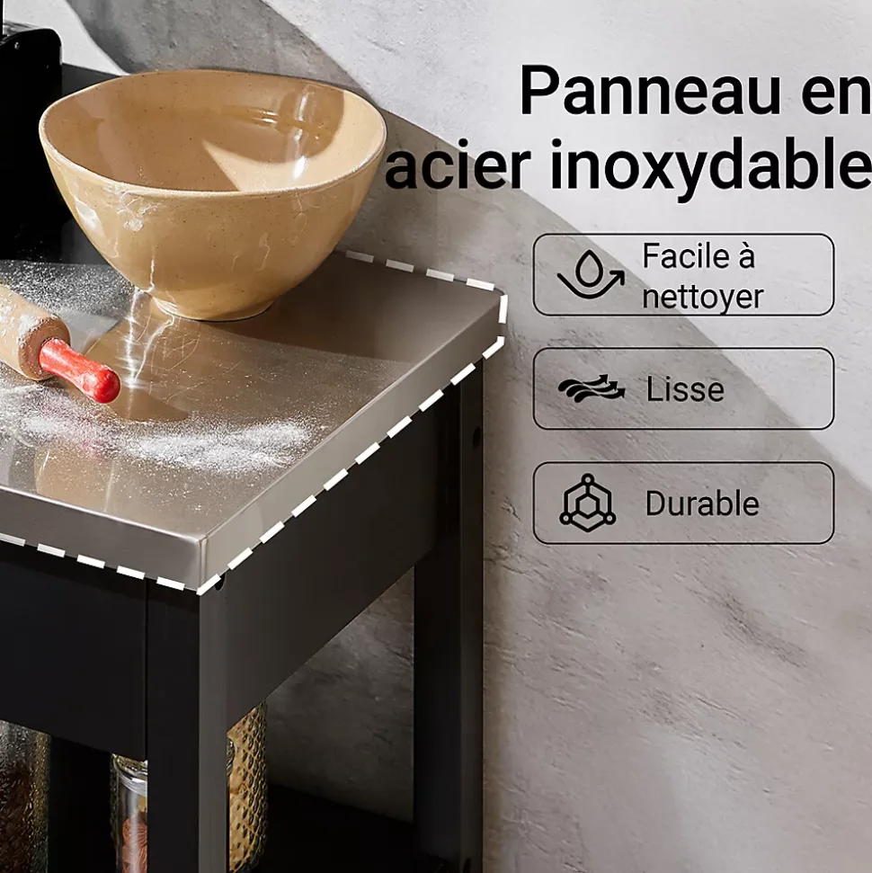 SoBuy FKW22-SCH Desserte de Cuisine Roulante, Meuble de Rangement à roulettesCe chariot de cuisine offre beaucoup d’espace de rangement pour divers ustensiles dans votre cuisine. Idéal pour mettre la cafetière, les tasses, l’imprimante etc. au bureau. Ce n’est pas seulement un joli accessoire décoratif pour votre cuisine, mais aussi une idée de servir directement les repas à vos invités. 1 grand plan de travail, 1 tiroir et 1 petite armoire avec 2 portes, dotées d’une fermeture magnétique. Qutre roulettes pivotent multidirectionnelles et deux d’entre elles sont équipées d’un frein parking. – Matériau: Plateau en Acier Inox, Bois et MDF laqué mat. – Dimensions desserte: L60cm x H90cm x P44,5cm. – Dimensions armoire : L51cm x H39cm x P39cm. – Poids: 20kg. Capacité de charge de chariot jusqu’à 30kg. Livraison : Desserte, Notice de montage détaillée. Cet article est livré sans éléments décoratifs des photos. Avec la Facture.