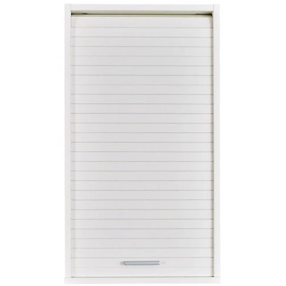 Meuble haut blanc 40 x 72 x 35 cm équipé d’un rideau coulissant, 2 étagères réglables, pose au mur ou sur plan de travail (fixations fournies). Panneaux mélaminés E1 16 mm, arrière MDF 5 mm. Fabrication française, éco-conçu, garanti 2 ans.