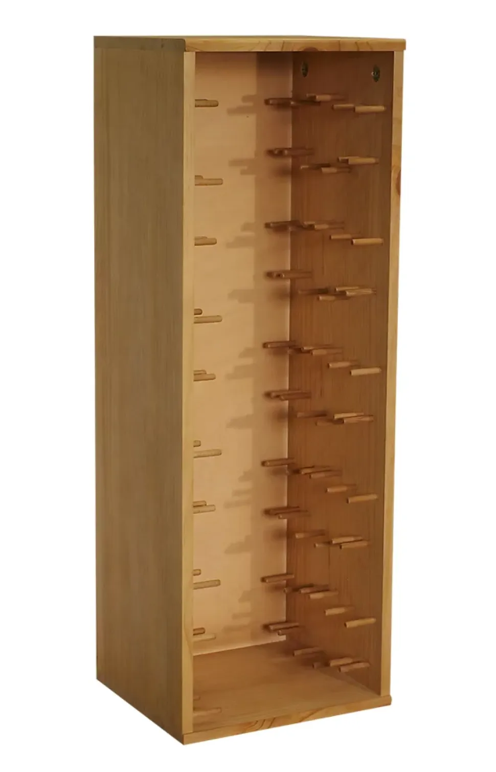 Rangement à bouteilles de vin en pinEX9223. Livré assemblé dans une boîte individuelle. Auto-portant, il peut -être installé seul ou ensemble avec d’autre rangement à bouteilles de la Série Godello en bois.