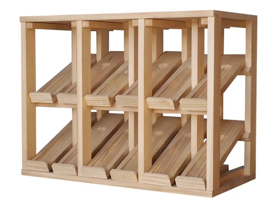 Rangement à bouteilles de vin en pin EX2192. Livré assemblé dans une boîte individuelle. Casier à bouteilles auto-portant, il peut -être installé seul ou ensemble avec d’autre rangement à bouteilles de la Série Godello en bois. Une fixation au mur est tout de fois conseillée par sécurité.