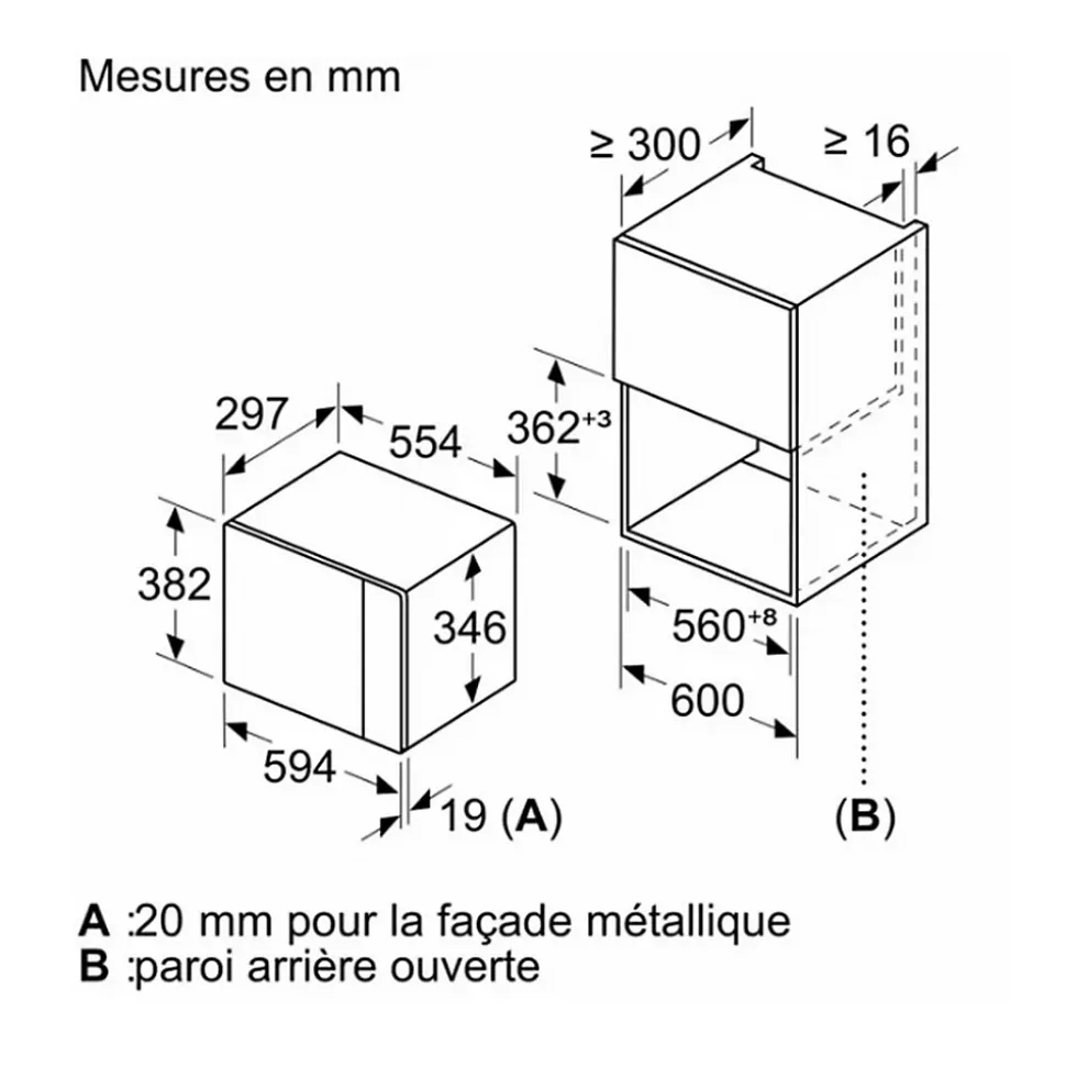 - Conçu pour encastrement en niche 38 cm (largeur niche 60 cm) avec apparence affleurante adaptée aux meubles.
