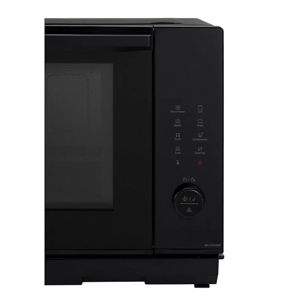 Micro-ondes combiné Panasonic NN DS59NBEPG de 27 L, allie micro-ondes, gril et vapeur pour une cuisson saine, rapide et savoureuse. Capacité sans plateau tournant pour plus d’espace. Technologie Inverter pour homogénéiser la cuisson et économiser jusqu’à 55% d’énergie. 28 programmes, design inox élégant et commandes intuitives. Puissance micro-ondes 1000 W, gril 1350 W, four 1100 W. Livré avec plat crispy.