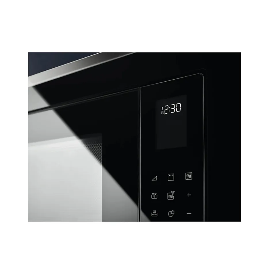 Four micro-ondes encastrable Electrolux LMS4253TMK 25 L, 900 W micro-ondes et grill 1000 W, cavité inox, plateau tournant 27 cm, commandes tactiles avec affichage LED, 8 niveaux de puissance, programmes automatiques selon le poids, fonction décongélation, verrouillage enfant, éclairage intérieur et horloge électronique.