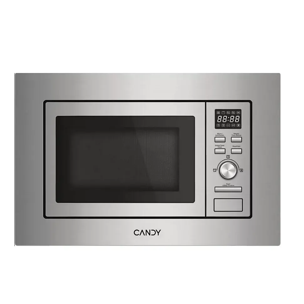 Micro-ondes gril encastrable 20l 800w inox Candy – Micro-ondes gril CA20FMW7NG de Candy.Candy Wave 600 encastrable en acier inoxydable : Conception en acier inoxydable, avec un cadre qui donne une touche d’élégance et d’attention aux détails.Cuisinez sans effort.Besoin d’aide en cuisine ? Choisissez l’un des 13 programmes de cuisson automatique, sélectionnez les aliments que vous souhaitez préparer et préparez votre repas sans effort. Désormais, tout le monde peut devenir un maître cuisinier.Simple et intuitif : Simplicité maximale pour des résultats parfaits. Grâce aux commandes Easy Touch, sélectionnez simplement le poids des aliments à cuire : le four à micro-ondes ajuste automatiquement le temps et la puissance de cuisson.Micro-ondes combiné : Les micro-ondes compacts encastrables innovants combinent un design italien avec une grande fonctionnalité.Fonction Décongélation : Grâce à la fonction Décongélation, décongelez les aliments rapidement et efficacement, soit en fonction du poids ou du temps. Cette fonction aide à préserver toute les qualités nutritionnelles et le goût des aliments.Sécurité enfant : La sécurité enfant empêche l’utilisation involontaire du microondes par les enfants, garantissant ainsi une sécurité absolue dans la cuisine. – Type de produit : Micro-ondes grill.Type d’installation : Encastrable.Volume (L) : 20.Puissance (W) : 800.Puissance gril (W) : 1000.Niveaux de puissance : 5.Nbre de programmes auto. : 8.Diam. plateau tournant (cm) : 24.5.Menus Auto : 8.Alimentation électrique : 230V / 50Hz.Ecran : Oui.Type d’affichage : LED blanches.Programmateur électronique : Oui.Ouverture de porte : Latérale charnières à gauche.Plateau tournant : Oui.Nature de la cavité : Inox.Type de commande(s) : Manettes.Connecté : Non.Décongélation : Oui.Supergril : Non.Alarme fin de cuisson :