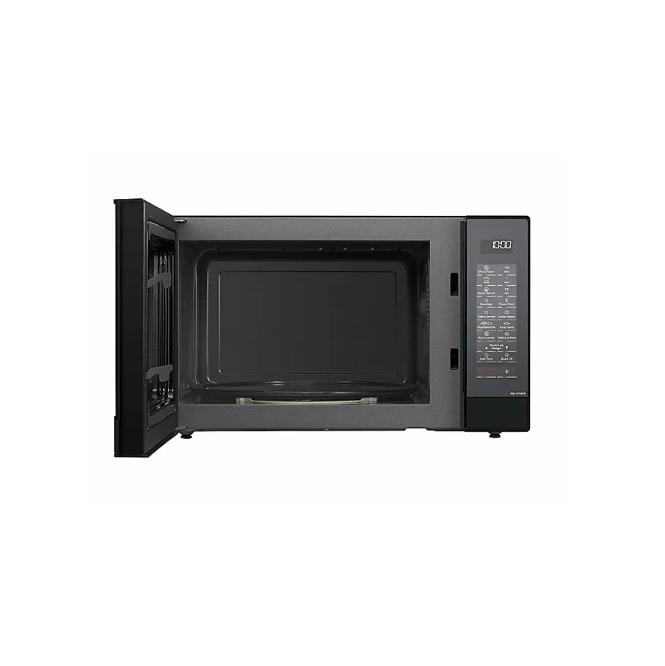 Micro-ondes grill 31l 1000w noir Panasonic – Four à micro-ondes Panasonic NN-GT46KBSUG avec grill. Four à micro-ondes spacieux de 31 L avec un gril à quartz de 1100 W pour des résultats plus croustillants. Il dispose d’un plateau tournant en verre de 34 cm. Utilisez des plats plus grands pour cuisiner pour toute la famille. Même les palais les plus exigeants vont se régaler avec le menu Junior. Avec ses 3 programmes automatiques (purée de légumes, compotes de fruits, porridge), la préparation des repas est un jeu d’enfant. Le gril à quartz de 1100 W gratine vos recettes préférées telles que les pizzas, les quiches et les légumes. Plusieurs menus auto gril permettent d’obtenir des résultats croustillants au quotidien. – Type de produit : Micro-ondes grill.Capacité du four : 31 L.Alimentation : 230 V / 50 Hz.Micro-ondes : 1 000 W.Puissance de grill : 1100 W.Charge connectée : 2100 W.Tension d’entrée AC : 230 V.Fréquence d’entrée AC : 50 Hz.Minuterie, départ différé : Oui.Écran integré : Oui.Type d’écran : LCD.Lumière intérieure : Oui.Type de minuterie : Numérique.Nombre de niveaux de puissance : 7.Nombre de programme : 24.Niveaux de puissance du gril : 3 (High, Med, Low).Type d’ouverture de porte : Bouton.Type de gril : Grill à quartz.aille du plateau tournant : 34 cm.Placement de l’appareil : Comptoir.Grill : Oui.Platine : Oui.Minuteur : Oui.Fonction horloge : Oui.Technologie de convertisseur : Oui.Type d’horloge : Électronique.Mode horloge : 24h.Cuisson vapeur : Non.Rotisserie : Non.Emplacement charnière de porte : Gauche.Couleur : noire.Dimensions extérieures (H x L x P) : 310 x 525 x 401 mm.Dimensions du four (H x L x P) : 247 x 359 x 362 mm.Poids net : 12,8 kg.