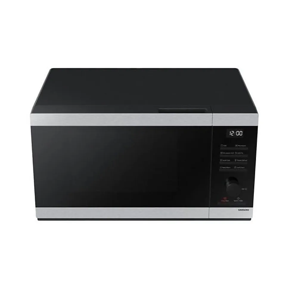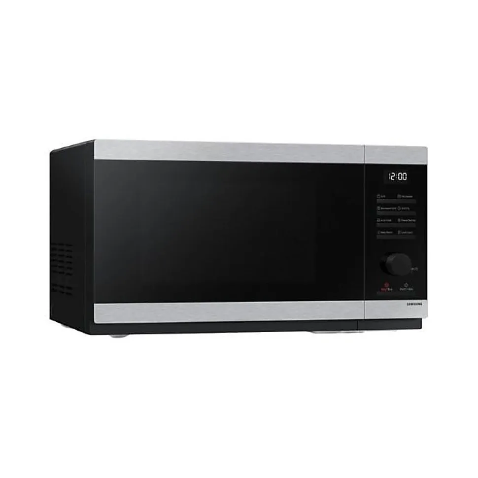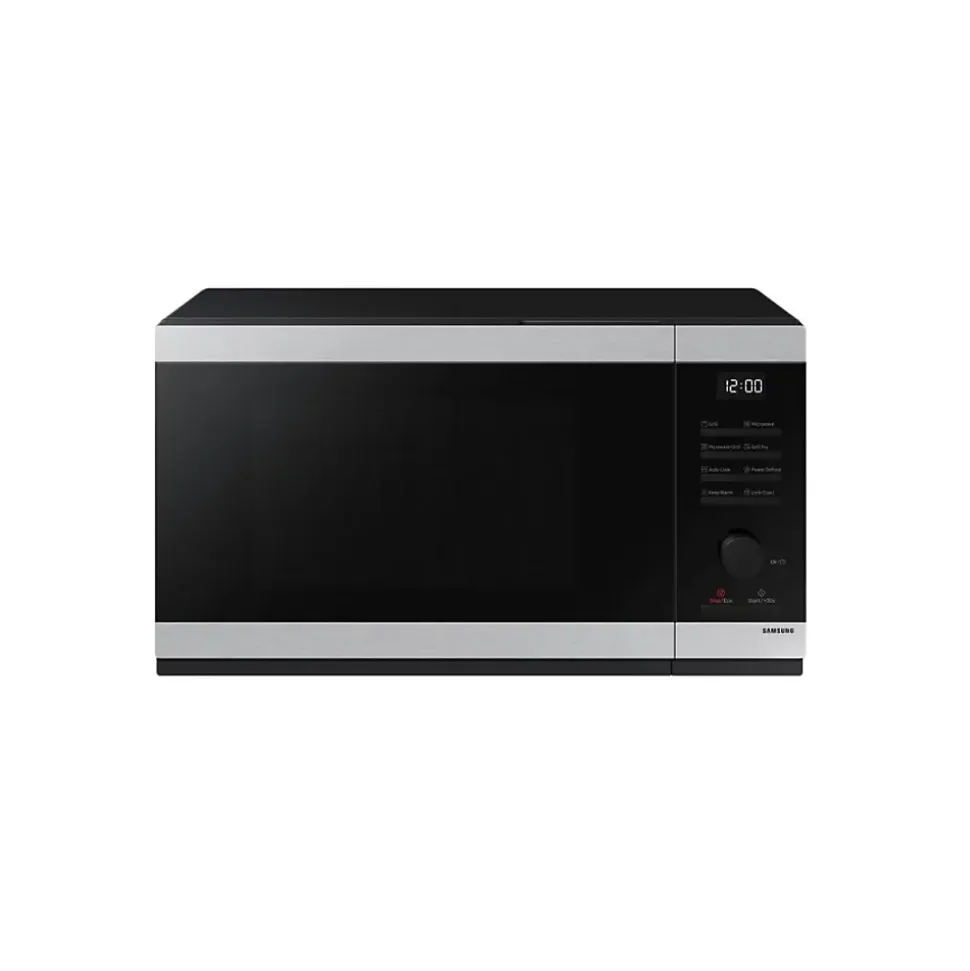 Micro-ondes grill 32l 900w inox Samsung – Micro-ondes grill MG32DG4524CT de Samsung.Chauffage par résistance métallique :Le plafonnier est métallique : plus résistant que le quartz, plus durable mais aussi plus facile à nettoyer.Design contemporain avec poignée cachée :Design modernisé avec finition inox noire,équipé d’une porte minimaliste. Sonaspect simple et épuré est accentué par une poignée encastrée qui permet une ouverture par le haut ou le bas.Décongélation Power Defrost :Cette technologie réduit le temps de décongélation nécessaire aux aliments, tout en préservant l’aspect et les qualités nutritionnelles. Sélectionnez simplement parmi 4 catégories courantes de nourriture : viande, volaille, poisson ou pâte/gâteau.Cavité céramique émail :La cavité céramique émail offre non seulement de meilleures performances de cuisson mais aussi une excellente résistance à l’usure et à l’abrasion.Comparés aux revêtements en acier inoxydable ou en époxy, les revêtements en céramique émail sont antibactériens, faciles à nettoyer et plus résistants.Utilisation simplifiée :Le panneau de commande a été simplifié avec seulement 8 boutons dédiés aux fonctions essentielles les plus fréquemment utilisées. Un bouton permetégalement une utilisation plus intuitive et un contrôle plus précis. Les paramètres sont facilement ajustables. – Type de produit : Micro-ondes gril.Fonction du modèle : Gril.Installation : A poser.Capacité : 32 l.Contrôle : Electronique + bouton.Couleur LED : Blanche.Nature de la cavité : Céramique émail.Puissance restituée en watts (IEC – 705) : 900W.Niveau de puissance micro-ondes : 6.Puissance absorbée en watts : 1500w.Rappel sonore de fin de cuisson : Oui.Horloge 12/24 heures : Oui.Type d’ouverture : Latérale avec bouton.Minuteur de cuisson : 99 min.Programmes automatiques : 8.Type de commande :