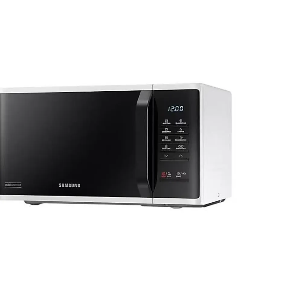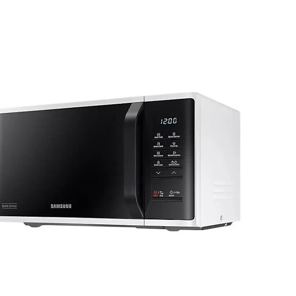 Micro-ondes solo Samsung 23 L, 800 W avec écran LED, 6 niveaux de puissance, fonction Quick Defrost, cavité en émail céramique facile à nettoyer, plateau tournant 330 mm et grille incluse.