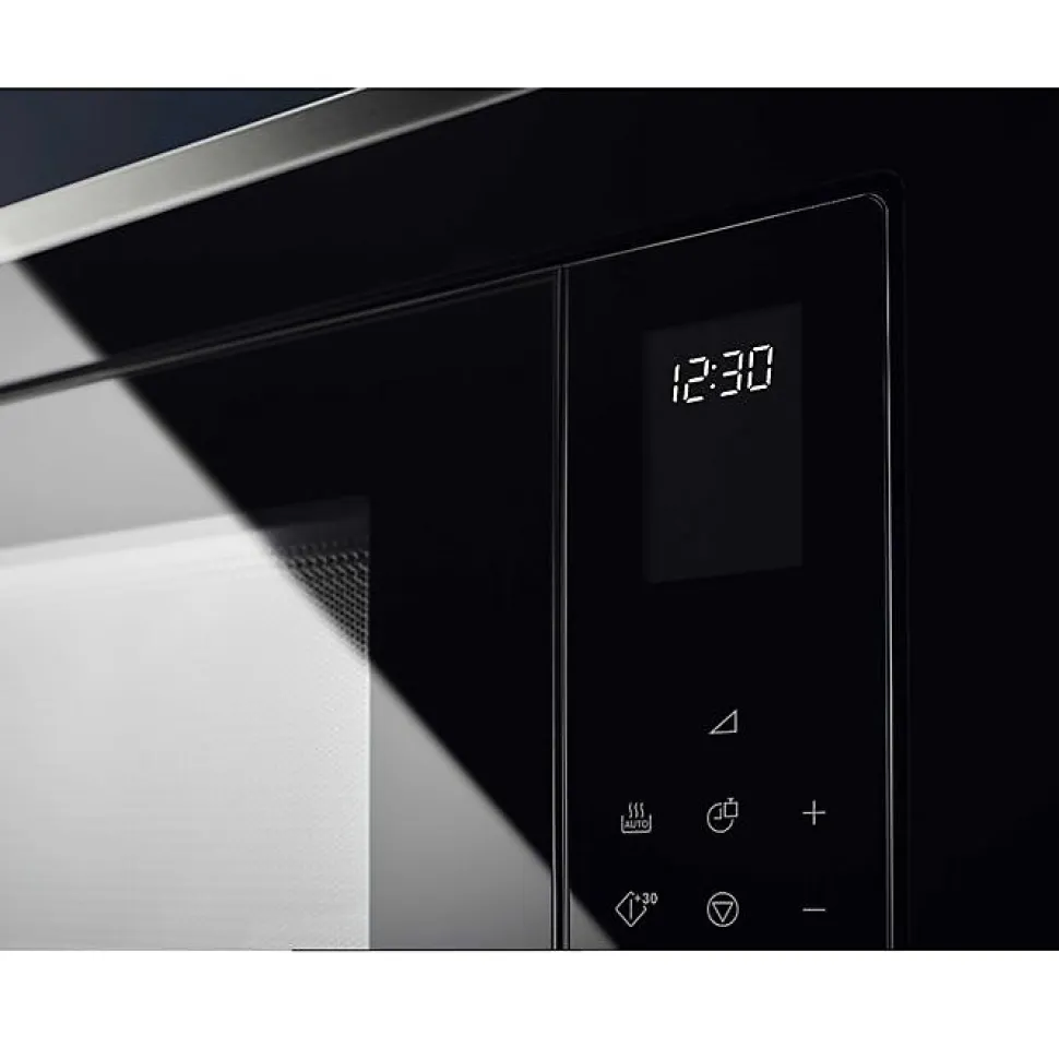 Le micro-ondes encastrable Electrolux LMS2253TMX combine 900 watts de puissance et une capacité de 25 litres pour réchauffer, décongeler et cuire rapidement vos plats. Doté de commandes sensitives, d’un plateau tournant en verre de 27 cm, et d’une finition noire inox anti-trace, il s’intègre parfaitement dans votre cuisine. Il propose également la décongélation automatique et 11 niveaux de puissance pour s’adapter à tous vos besoins.