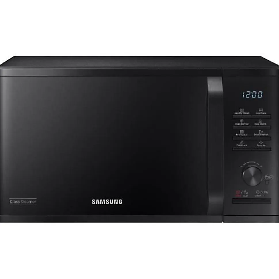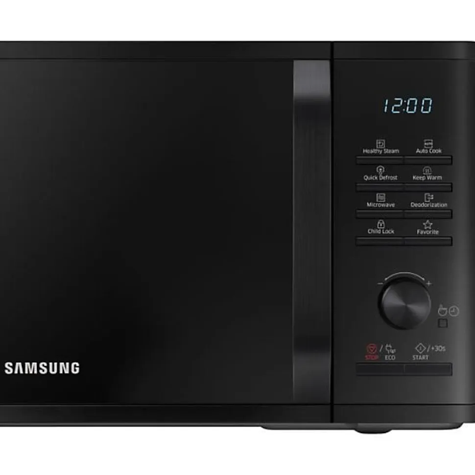 SAMSUNG – Micro-ondes solo 23l Contrôle électronique + bouton Fonction maintien au chaud Décongélation Quick Defrost Cocotte vapeur en verre Finition Noir