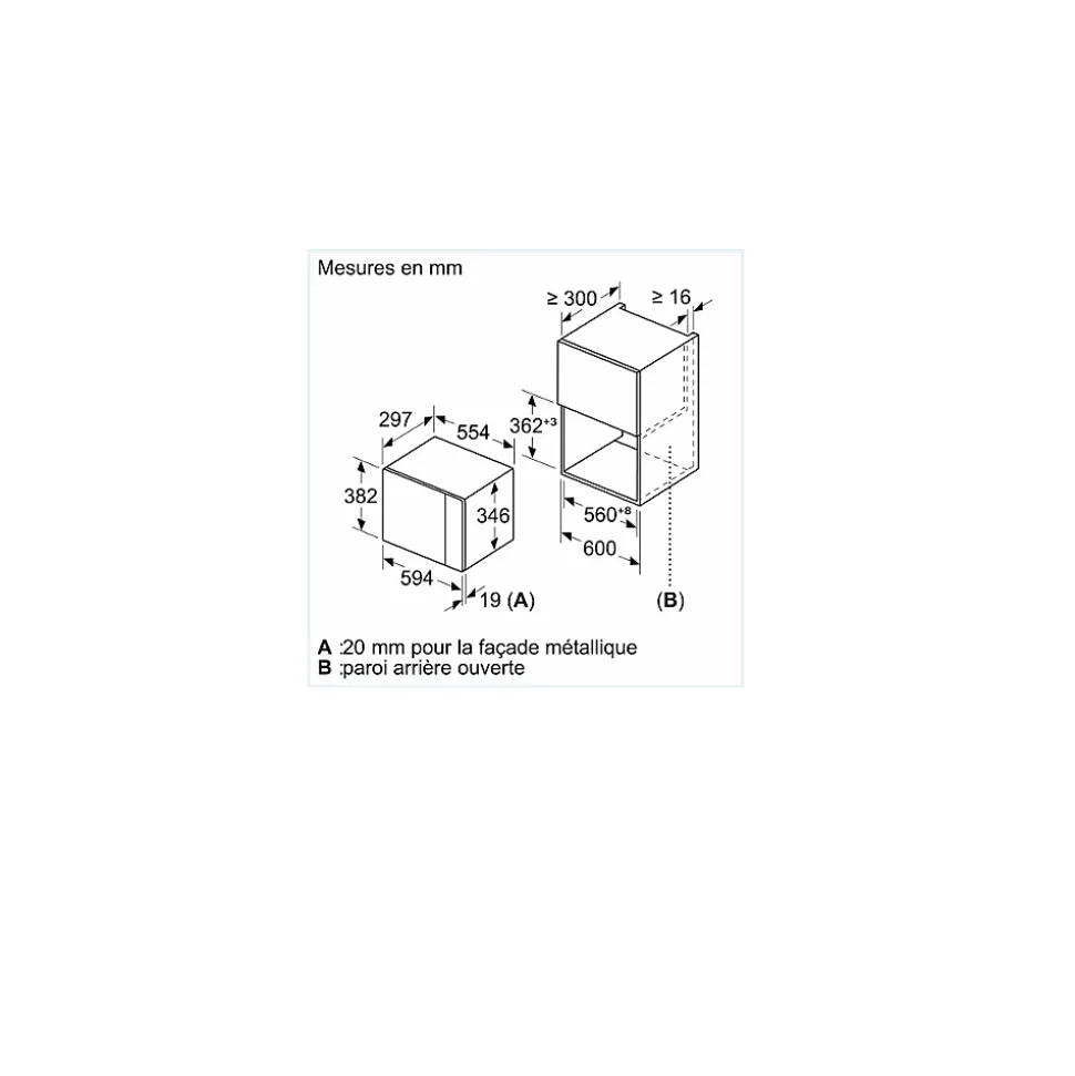Le micro-ondes intégrable Siemens BE523LMB1F de la Série iQ300 est parfait pour décongeler, réchauffer et cuisiner rapidement tout en s’intégrant harmonieusement dans votre cuisine. Avec une puissance maximale de 800 W et 5 niveaux de puissance, il s’adapte à toutes vos préparations. La fonction grill de 1 kW permet de dorer vos plats à la perfection, tandis que la technologie cookControl8 propose 8 programmes automatiques pour simplifier la cuisson. Doté de commandes touchControl, la navigation est intuitive et précise. Sa cavité de 20 litres en acier inoxydable, associée à un nettoyage par hydrolyse humidClean, facilite l’entretien. Son plateau tournant en verre de 25,5 cm assure une répartition uniforme de la chaleur. Conçu pour une installation encastrable dans une niche de 38 cm, il dispose d’une ouverture électronique de la porte et d’un éclairage LED.