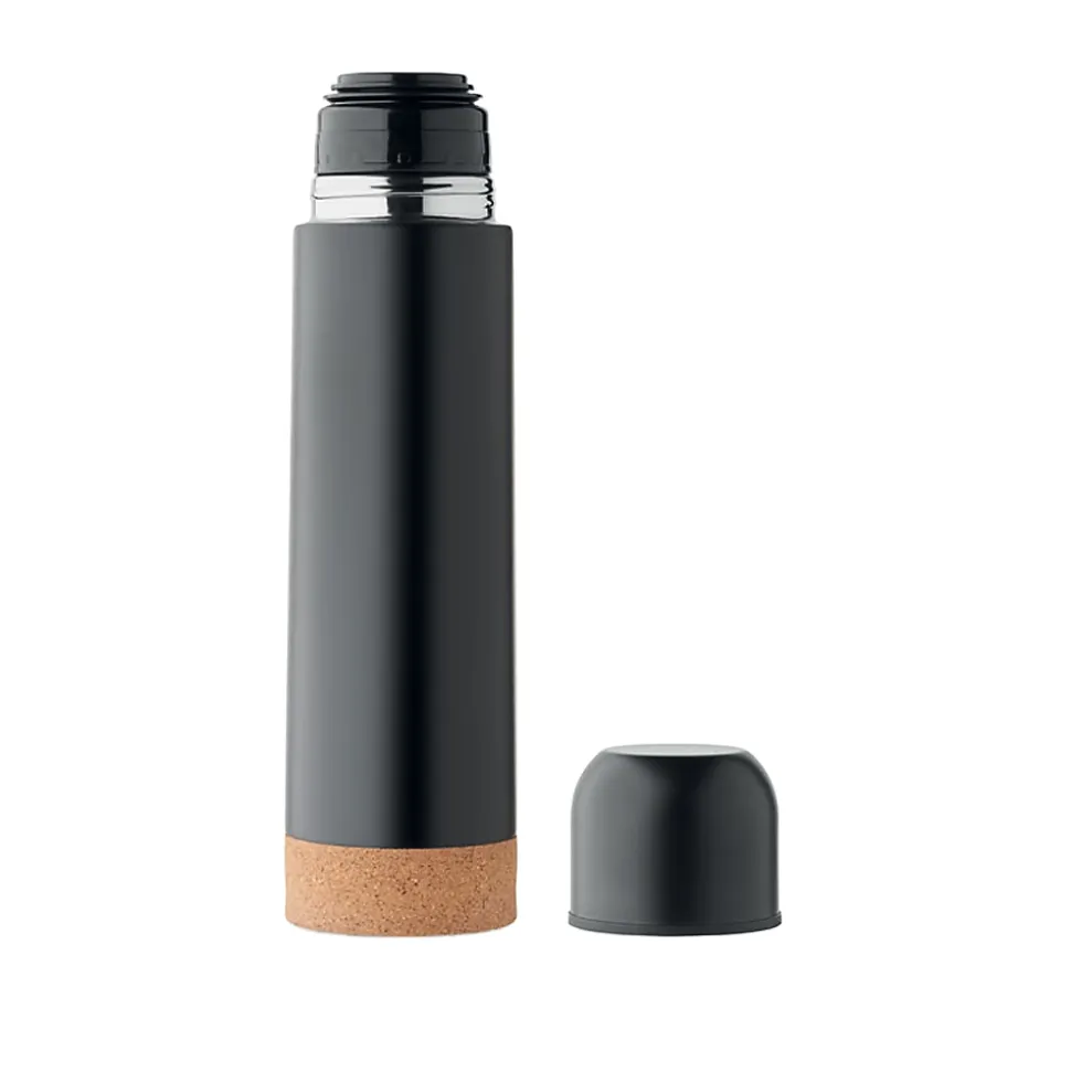 Matière : liège, acier inoxydable recyclé. Hauteur : 25cm. Longueur : 6,5cm. Largeur : 6.5cm. Double paroi, étanche, couvercle vissé, isolé sous vide. Design : Plain. Capacité : 500ml. Emballage : Boîte. Développement durable : Amfori, BSCI.
