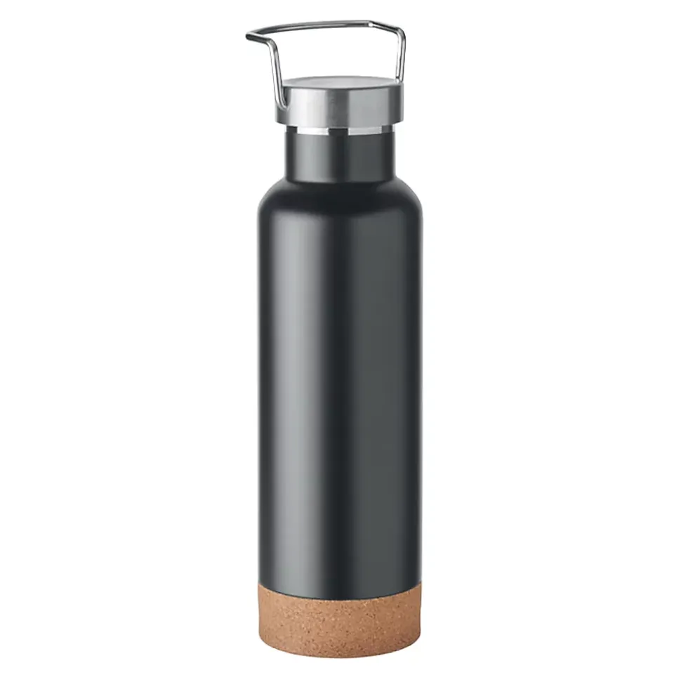 Matière : liège, acier inoxydable recyclé. Hauteur : 24cm. Longueur : 7cm. Largeur : 7cm. Poignée de transport, double paroi, étanche, couvercle vissé, isolé sous vide. Design : Plain. Capacité : 500ml. Emballage : Boîte. Développement durable : Amfori, BSCI. Conforme à la norme de sécurité : EC 1907/2006, conforme à REACH.