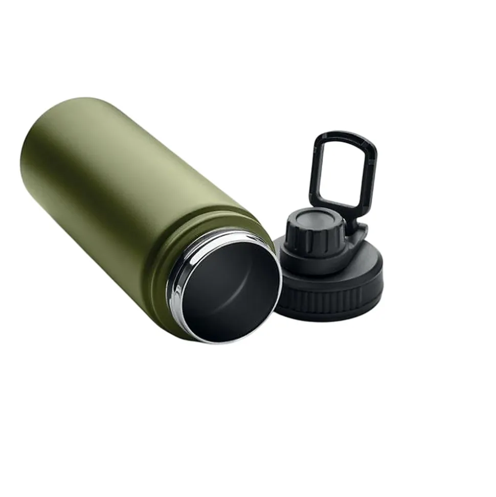 Matériau : Acier inoxydable. Hauteur : 22cm. Largeur : 7cm. Poignée de transport, double paroi, bec verseur, couvercle vissé, isolant sous vide. Design : Plain. Capacité : 500ml. Emballage : Boîte. Développement durable : Amfori, BSCI. Conforme aux normes de sécurité : testé sur les phtalates, conforme à REACH.