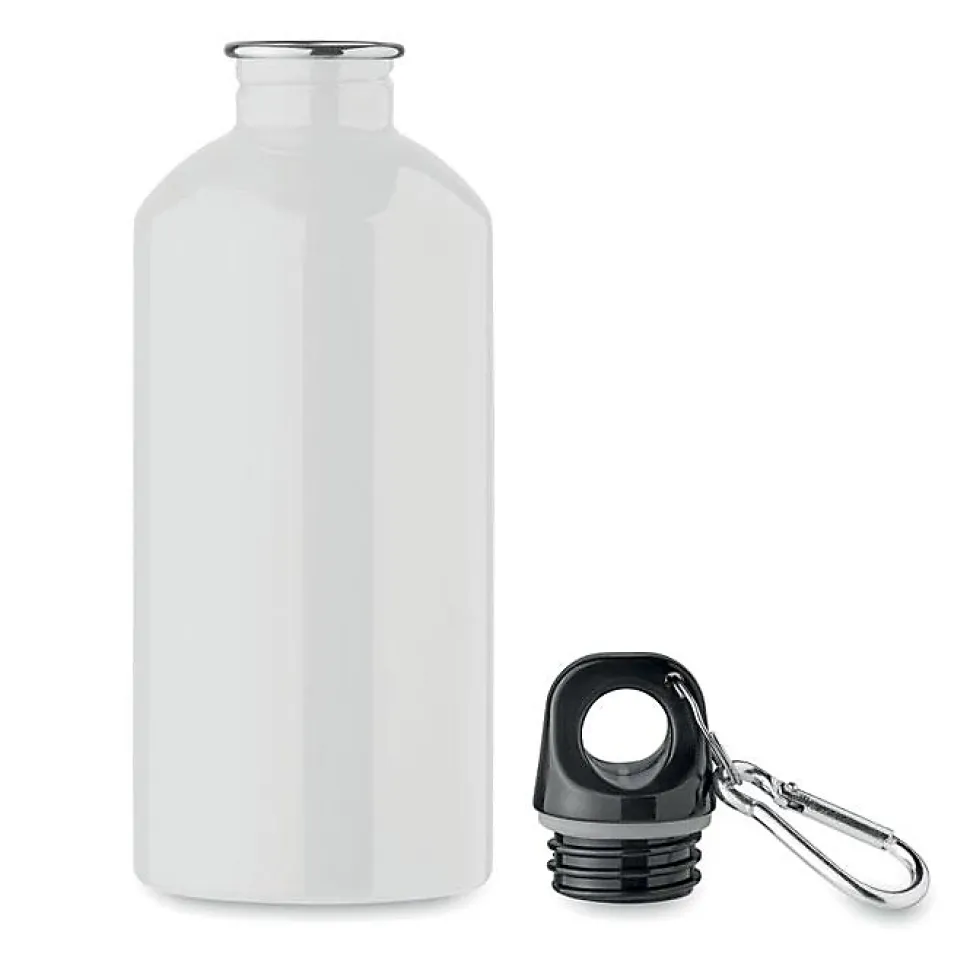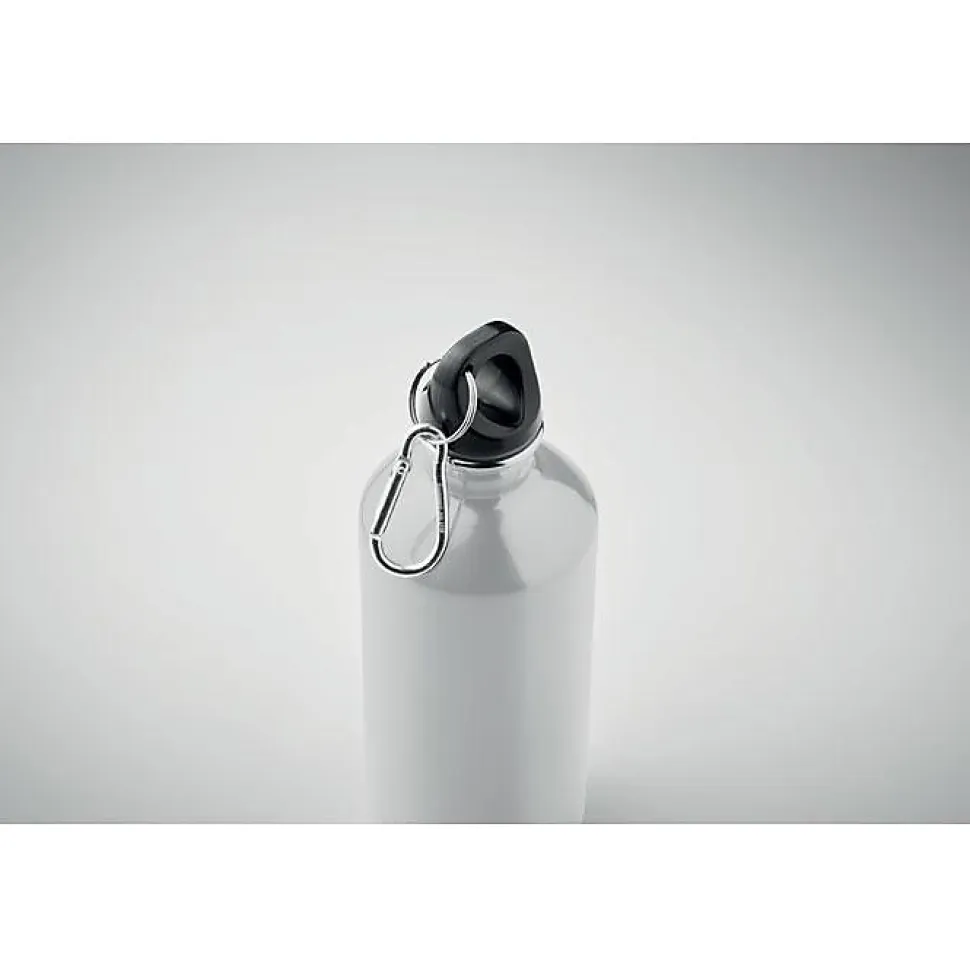 90 % acier inoxydable recyclé, 10 % acier inoxydable. Hauteur : 19cm. Largeur : 6.5cm. Mousqueton, étanche, simple paroi. Design : Plain. Capacité : 500ml.