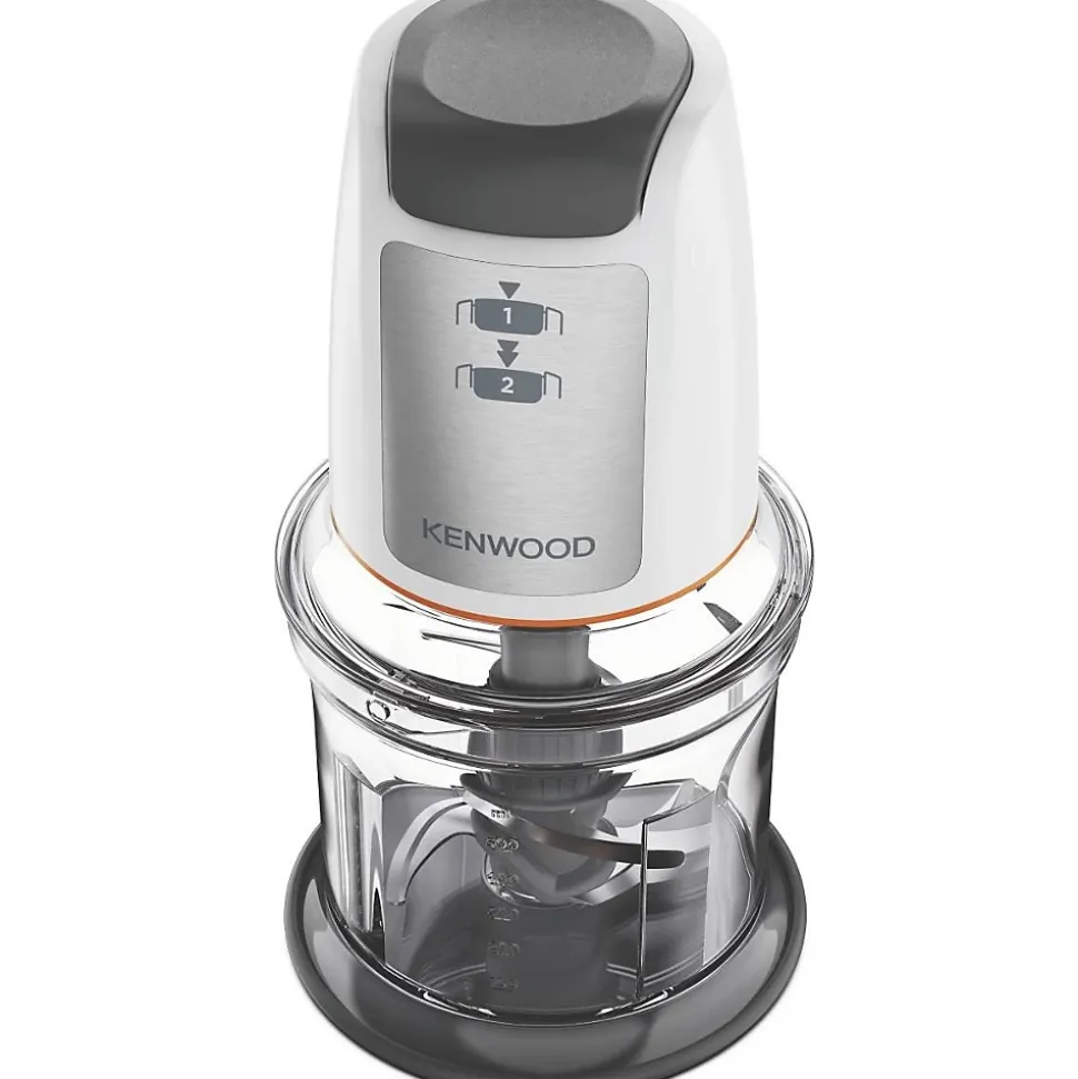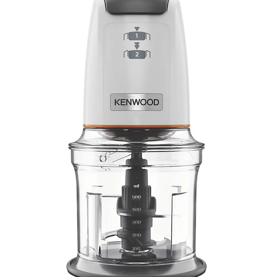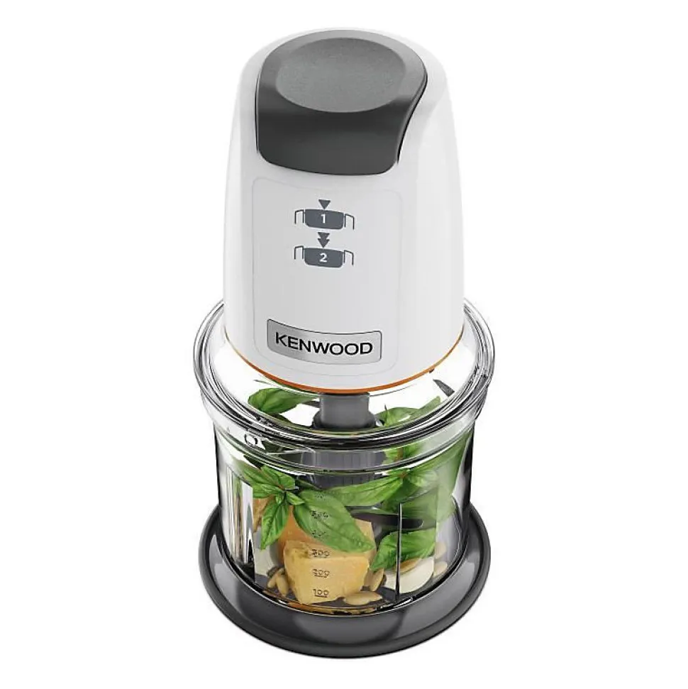 Mini-hachoir 0,5l 500w blanc Kenwood – Mini-hachoir EASY CHOP CHP61.100WH de Kenwood. Doté d’une capacité totale de 0,8 L et de 4 lames en acier inoxydable il mixe et hache de façon rapide et précise. Ajustez la vitesse d’une simple pression sur le couvercle pour des résultats adaptés à chaque préparation. Réussissez à coup sûr, vos mayonnaise grâce à l’accessoire fourni. Enfin, cuisinez en toute sécurité grâce à la base antidérapante et au système de sécurité intégré au couvercle. Facile à nettoyer le bol et les lames passent au lave-vaisselle. 4 lames en acier inoxydable : Les 4 lames en acier inoxydable, positionnées à des hauteurs différentes dans le bol offrent une qualité de coupe exceptionnelle. Hachez des morceaux de viande, des légumes, mixez des sauces et pilez de la glace en toute simplicité. Pratique et simple d’utilisation ! Doté de deux vitesses, ajustez la puissance en appuyant sur le dessus du couvercle pour actionner l’appareil. Grâce à la base antidérapante sous le bol, le EASY CHOP est stable, pour une utilisation en toute sécurité. Accessoire mayonnaise : Pour une utilisation encore plus variée, cet accessoire permet de réussir des mayonnaises faites maison en toute simplicité. – Type de hâchoir : Mini-hachoir.Puissance max. (en W) : 500.Nombre de vitesses : 2.Matière de l’appareil : Plastique.Capacité maxi. : 0,8 L.Capacité utile : 0,5 L.Nombre de lames : 4.Interrupteur (marche / arrêt) : Non.Touche (marche / arrière) : Non.Sécurité(s) : oui intérgrée au couvercle.Accessoire(s) inclu(s) : Accessoire mayonnaise, Spatule.Rangement du cordon : Non.Couleur : Blanc.Dimensions produit (Lxlxh en cm) : 13,1 x 13,1 x 26,3.Poids (en kg) : 1,16.