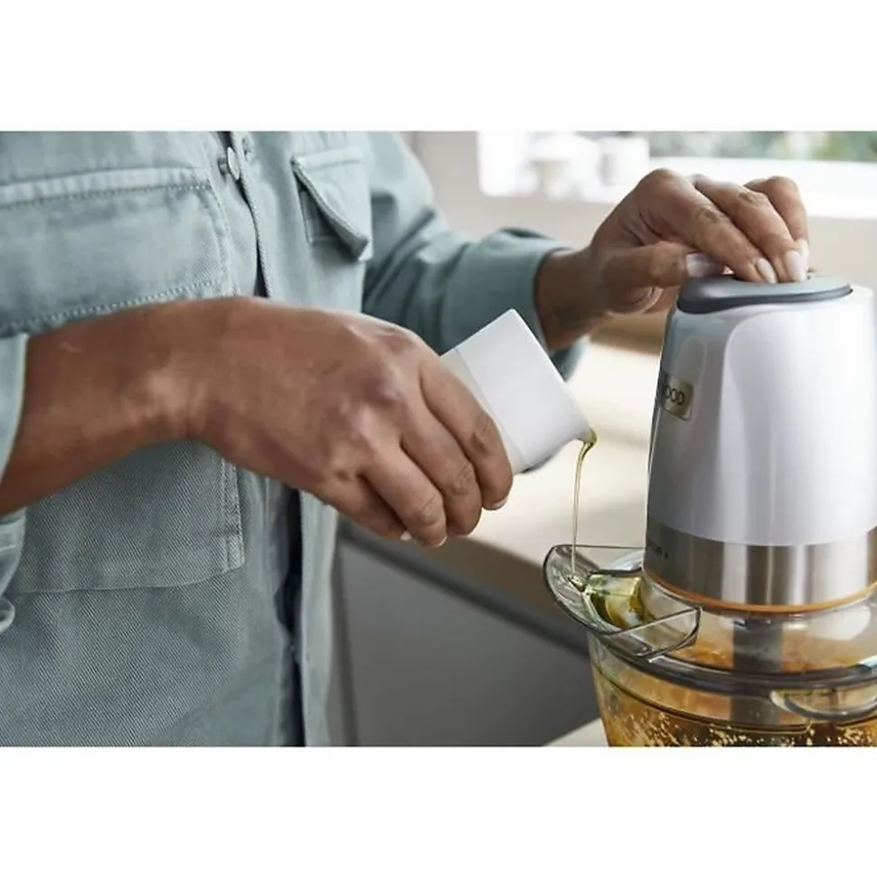 Mini-hachoir 1.2l 500w silver Kenwood – Mini-hachoir EasyChop+ CHP62400SI de Kenwood. Facile, rapide et polyvalent ! Des fonctionnalités innovantes pour une expérience améliorée ! Puissant, ce mini-hachoir vous permettra de hacher sans efforts toutes sortes d’aliments et pilera de la glace en toute simplicité ! Choisissez parmi les 2 vitesses d’une simple pression et réussissez toutes vos recettes du quotidien : légumes et viandes hachées, sauces, dips, glace pilée, etc.. Son bol en verre gradué de 0,6 L utile (capacité totale 1.2 L) vous garantit une préparation sans transfert de goût, d’odeurs ou de couleurs. Ses lames Quad Blade en acier inoxydable sont amovibles pour un nettoyage plus facile – L’ouverture astucieuse du couvercle et l’accessoire spécialement dédié vous permettront de réussir à coup sûrs vos mayonnaises – Nettoyage facile : le bol et les lames passent au lave-vaisselle. – Type de produit : Mini-hachoir.Puissance : 500 W.Nombre de vitesses : 2.Capacité totale : 1.2 L.Capacité utile : 0.6 L.Accessoire mayonnaise : Oui.Couvercle : Oui.Nombre lames : 4 lames Quad Blade en acier inoxydable.Sécurité intégrée au couvercle : Oui.Base antidérapante : Oui.Compatible lave-vaisselle : Oui.Clip range-cordon : Oui.Livré avec une spatule : Oui.Coloris : Silver.Dimensions produit (Lxlxh en cm) : 19,1 x 17,4 x 25,6.Poids : 1.68 Kg.
