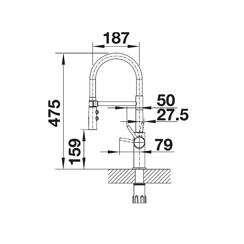 Mitigeur Blanco 525792 avec douchette intégrée, design élégant, flexible polymères de 450 mm, bec orientable à 360°, finition PVD ultra résistante, clapet anti-retour conforme EN 1717, régulateur de jet breveté pour une durabilité optimale et une expérience utilisateur confortable.