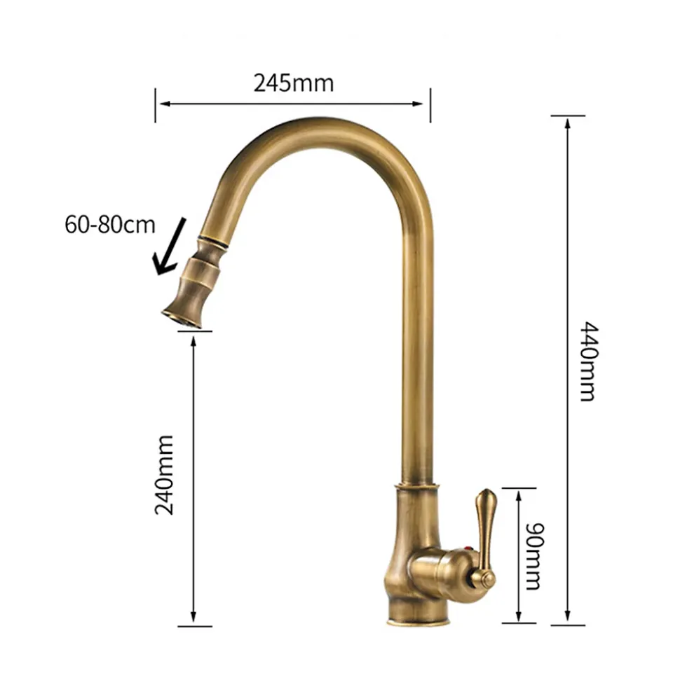 Ce mitigeur d’évier de cuisine en laiton doré apporte une touche élégante et chaleureuse à votre plan de travail tout en offrant un grand confort d’utilisation au quotidien. Son bec haut en forme de col de cygne permet de remplir facilement casseroles, faitouts et vases, même dans un évier profond ou double bac. Avec une hauteur totale d’environ 440 mm et une hauteur sous bec d’environ 240 mm, ce robinet offre un large espace de manœuvre pour la vaisselle volumineuse. La portée de bec d’environ 245 mm assure un jet parfaitement centré dans la cuve, limitant les éclaboussures. Le bout du bec est orientable sur 60–80 mm pour diriger précisément le jet d’eau là où vous en avez besoin, pratique pour rincer fruits, légumes ou les parois de l’évier.Le corps et le bec sont entièrement réalisés en laiton massif, matériau reconnu pour sa résistance à la corrosion et sa longévité en milieu humide.Une simple éponge douce suffit pour conserver l’éclat du mitigeur sans produits agressifs. Le mitigeur est compatible avec les systèmes d’eau chaude classiques (chaudière, cumulus, chauffe-eau instantané) et fonctionne de manière optimale avec une pression entre 1 et 5 bars.