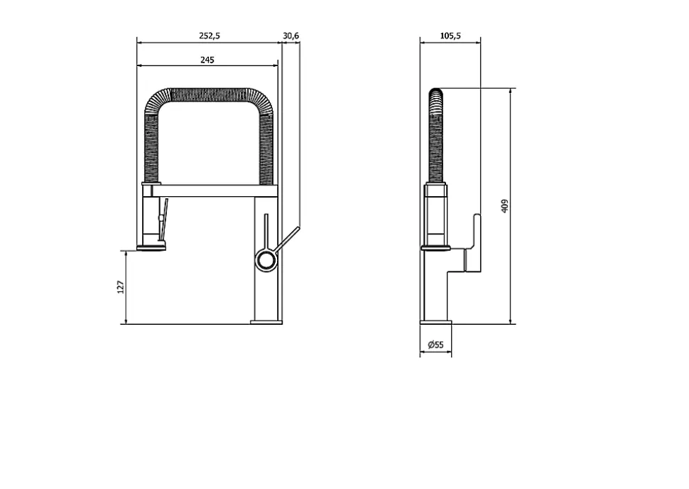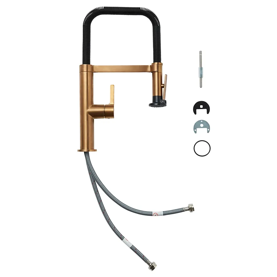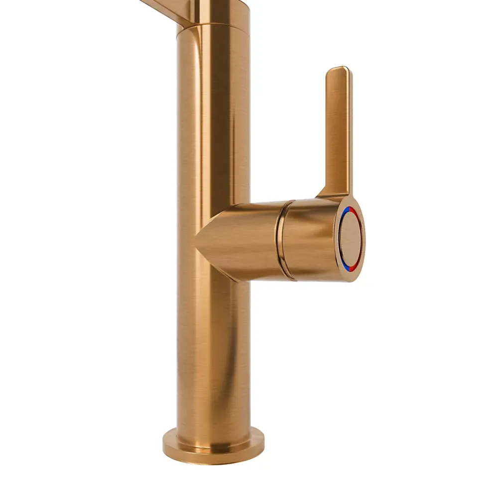 Simple et contemporain, ce robinet repousse les limites grâce à des fonctionnalités pratiques sans compromettre le design. La douchette avec ressort pratique contraste magnifiquement avec la base et la manette laiton satiné, pour une finition remarquable