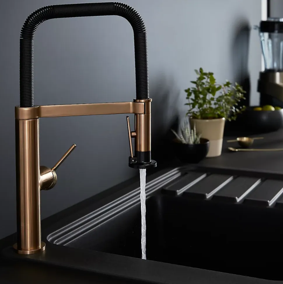 Mitigeur de cuisine avec douchette noir et laiton GoodHome Kamut