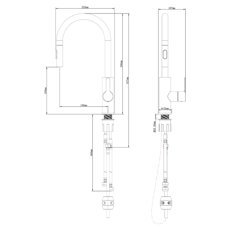 - La douchette extractible facilite le nettoyage