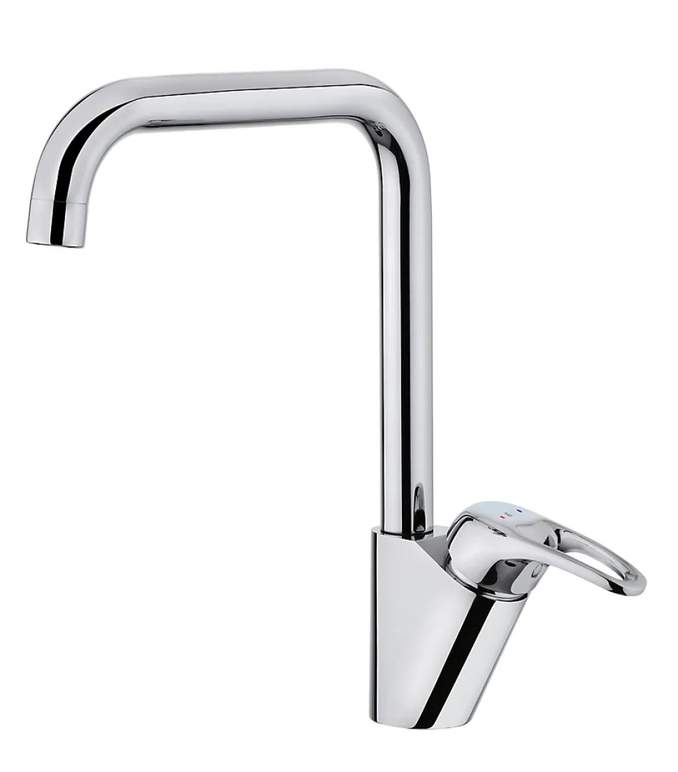 Mitigeur évier chromé Hauteur 297mm et base diamètre 47mm Cartouche à disques céramique de 35mm Alimentation lyres tressées inox 3/8 40cm Kit de fixation facile