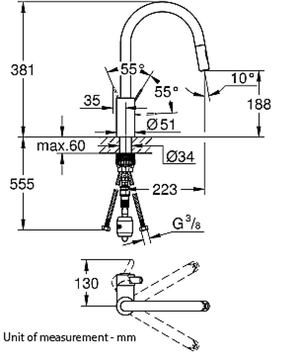 - Grohe EasyDock : Assure une bonne remise en place de votre douchette ou mousseur extractible