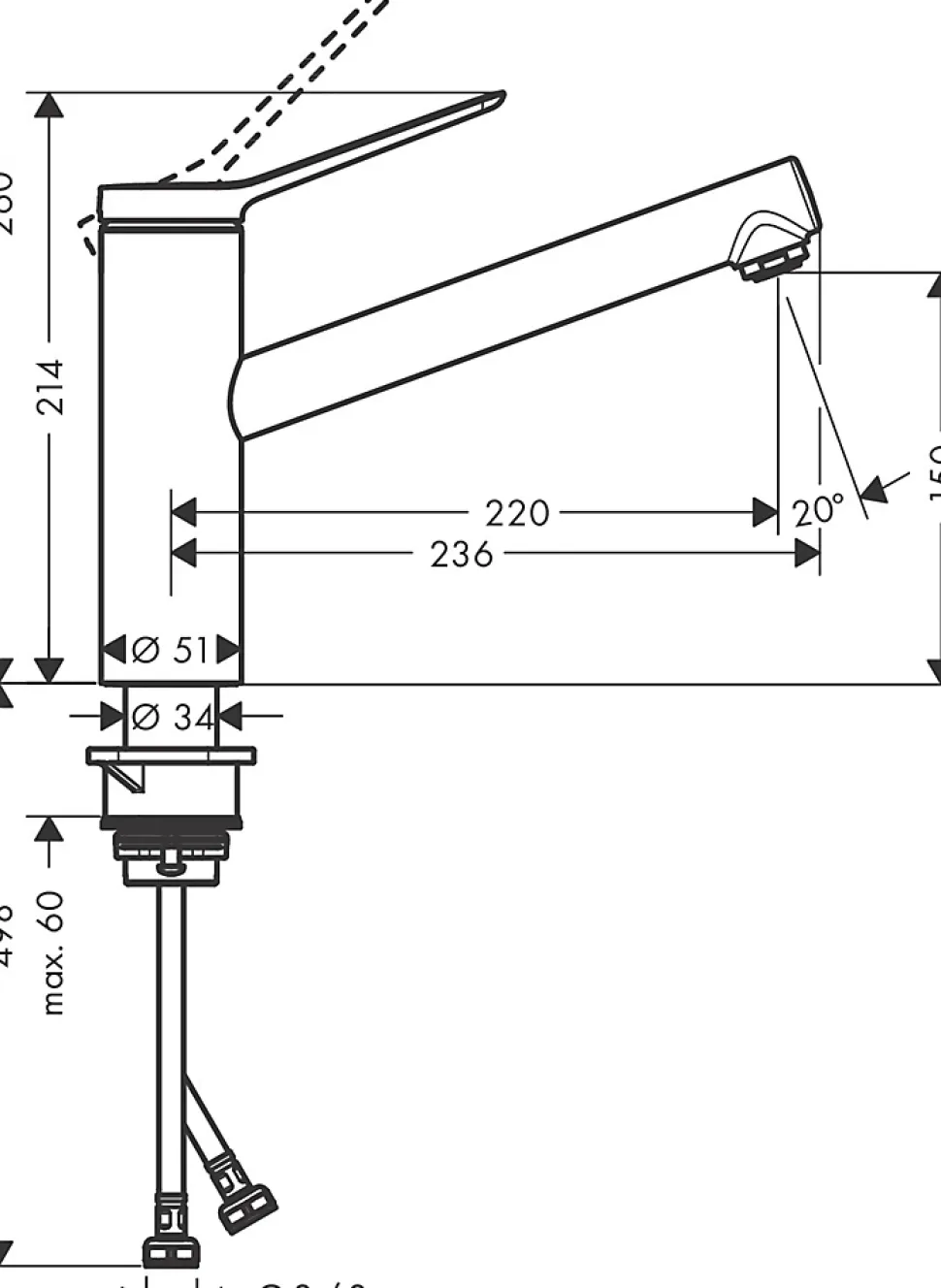 - Comprenant : Mitigeur de cuisine, flexibles de raccordement, set de fixation, instructions de montage