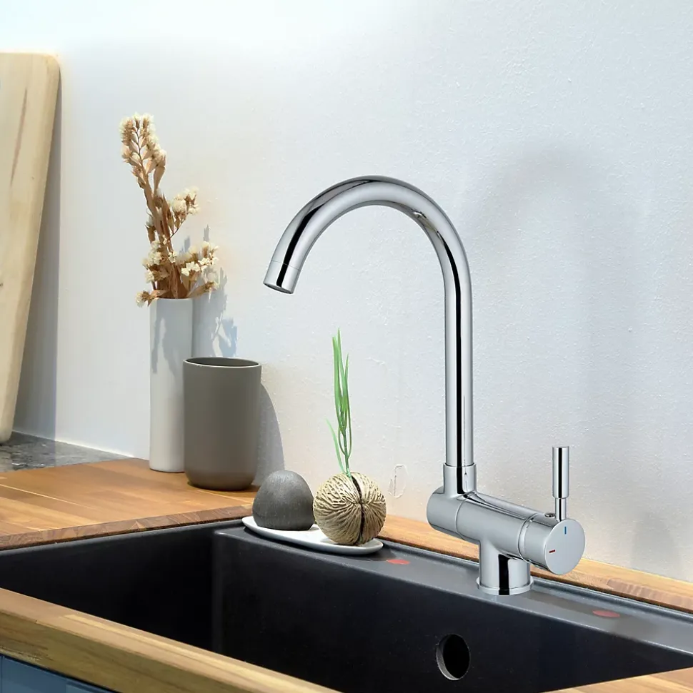 Mitigeur de cuisine rabattable en métal effet chromé Edouard Rousseau Krami