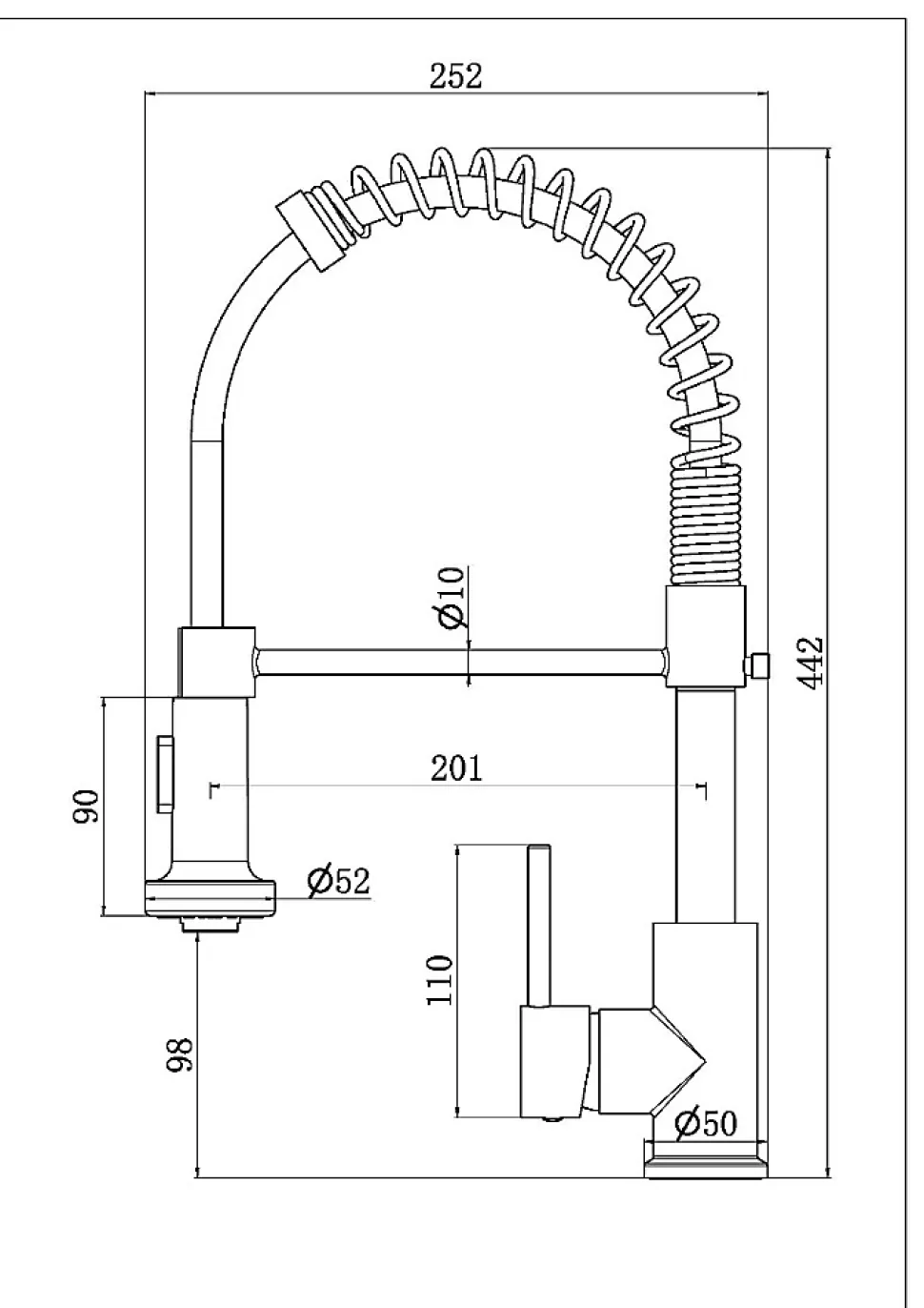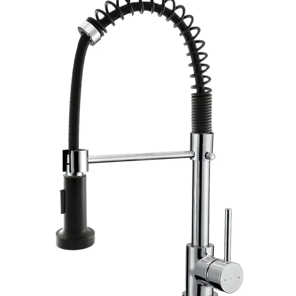 Un robinet mitigeur design et maniable avec sa douchette équipée de 2 jets, voici le ‘Plimo’ plus moderne en version noir ! Pratique et efficace, il est de plus facile à monter avec son système de fixation facile. DESIGN ET QUALITE Couleur : Chromé finition noir Produit : Robinet mitigeur évier à douchette mobile (non extractible) Corps du robinet : Rond en laiton avec barre stabilisatrice de maintien Bec : Pivotant Barre stabilisatrice de maintien : En laiton Poignée : En métal Douchette : Noire et mobile, elle est équipée de bouton 2 jets Mécanisme : Cartouche à disques céramique 35 mm Flexible : Ressort en métal avec flexible tressé noir Kit de fixation : Système ESSEFIX (fixation facile sans outil) Alimentation à l’eau : Lyres tressées inox 35 cm inclus DIMENSIONS Hauteur totale : 442mm Hauteur sous bec : 98mm Largeur sortie d’eau/axe du corps : 201mm Diamètre embase : 50mm NORMES : Certification ACS : Accréditation de Conformité Sanitaire. GARANTIE : Corps garanti 5 ans. Pièces d’usure (poignée, cartouche, flexibles…) garanties 2 ans. Conseils d’utilisations et d’installation : – Avant de procéder au montage, nous vous conseillons de purger soigneusement les tuyauteries d’eau chaude et d’eau froide pour éviter que les saletés et résidus puissent compromettre le bon fonctionnement de la robinetterie. – Après avoir fermé l’alimentation d’eau principale, démonter l’ancienne robinetterie. – Nettoyez soigneusement le filetage des tubes d’alimentation d’eau principale. – Installer le mitigeur de cuisine dans un trou de 35 mm dans un évier ou plan de travail. – Vérifiez que la longueur du bec est compatible avec votre évier (voir dessin technique) Conseils d’entretien : – Pour garder votre robinet le plus longtemps possible, l’idéal est de le nettoyer tous les jours avec un chiffon humide non abrasif ou une microfibre, terminer en essuyant avec une microfibre ou un chiffon sec. – Ne jamais utiliser de solvants, d’éponges métalliques, d’eau de javel, d’acides, de dét