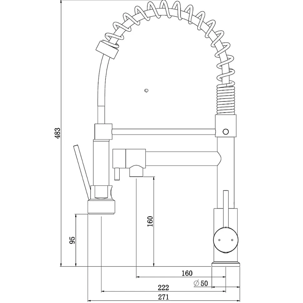 Le ‘Big Pro’ est le mitigeur par excellence. Design moderne et industriel, pratique et complet en version gris gun métal, doté d’un bec verseur, il sera très utile dans votre cuisine. DESIGN ET QUALITE – Couleur : Gris gun métal – Produit : Robinet mitigeur évier à douchette mobile (non extractible) – Corps du robinet : Rond en laiton avec barre stabilisatrice de maintien – Bec : Pivotant et bec verseur avec robinet d’arrêt – Barre stabilisatrice de maintien : En laiton – Poignée : En métal – Douchette : Mobile avec monojet – Aérateur anticalcaire : Oui (limite la production de calcaire) – Mécanisme : Cartouche à disques céramique 35 mm – Flexible : Ressort en métal avec flexible tressé – Kit de fixation : Système ESSEFIX (fixation facile sans outil) – Alimentation à l’eau : Lyres tressées inox 35 cm incluses DIMENSIONS – Hauteur totale : 483mm – Hauteur sous bec : 95mm – Largeur sortie d’eau/axe du corps : 222mm – Diamètre embase : 50mm NORMES : – Certification ACS : Accréditation de Conformité Sanitaire. GARANTIE : – Corps garanti 5 ans. – Pièces d’usure (poignée, cartouche, flexibles…) garanties 2 ans. Conseils d’utilisations et d’installation : – Avant de procéder au montage, nous vous conseillons de purger soigneusement les tuyauteries d’eau chaude et d’eau froide pour éviter que les saletés et résidus puissent compromettre le bon fonctionnement de la robinetterie. – Après avoir fermé l’alimentation d’eau principale, démonter l’ancienne robinetterie. – Nettoyez soigneusement le filetage des tubes d’alimentation d’eau principale. – Installer le mitigeur de cuisine dans un trou de 35 mm dans un évier ou plan de travail. – Vérifiez que la longueur du bec est compatible avec votre évier (voir dessin technique) Conseils d’entretien : – Pour garder votre robinet le plus longtemps possible, l’idéal est de le nettoyer tous les jours avec un chiffon humide non abrasif ou une microfibre, terminer en essuyant avec une microfibre ou un chiffon sec. – Ne jamais utiliser