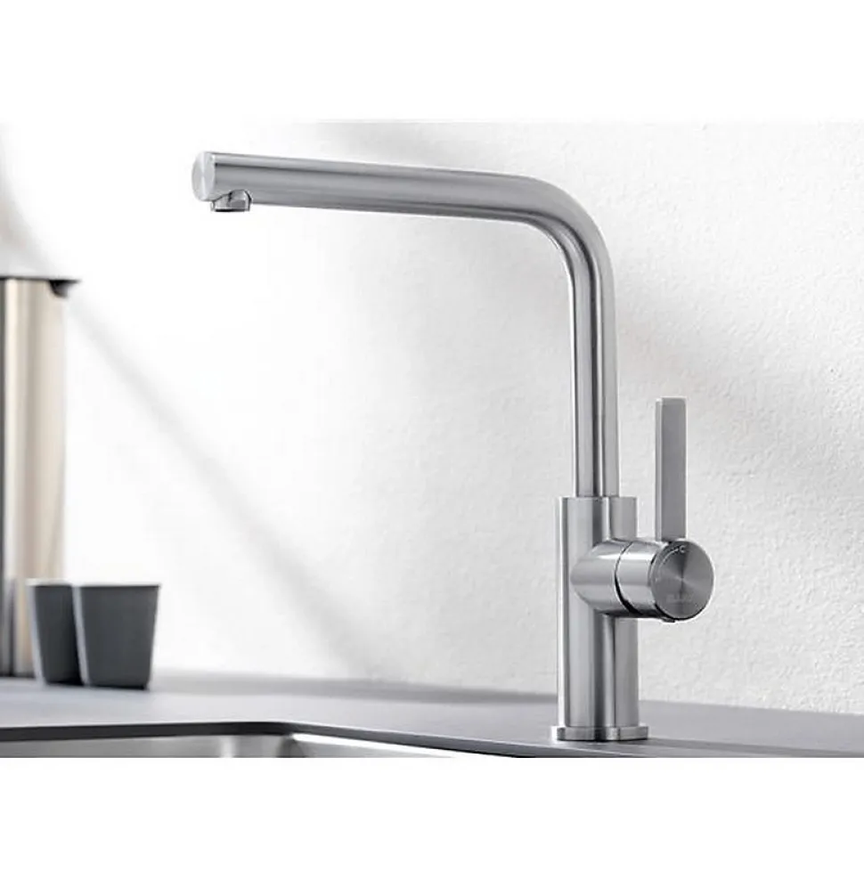 Mitigeur évier monocommande inox brossé Blanco – Mitigeur évier monocommande Blanco LANORA 523122 avec Design haut de gamme en inox massif brossé. Des lignes épurées pour des cuisines modernes. Bec haut pour remplir facilement casseroles et vases. Peut être installé contre un mur grâce à son levier de commande vertical en position de base, pour une plus grande liberté de mouvement. Économie d’énergie : position de base du levier de commande sur eau froide. Flexibles de raccordement d’une longueur de 450 mm et écrou 3/8 » pour un montage simple et sûr. Régulateur de jet breveté réduisant nettement les dépôts de calcaire. Plaque de renfort augmentant la stabilité de la robinetterie lors de l’encastrement dans les éviers en inox. Équipé de série d’un clapet anti-retour, donc intrinsèquement sûr en matière de retours d’eau suivant la norme EN 1717. – Type de produit : Mitigeur de cuisine.Bec orientable à 360°.Percement Ø 35 mm nécessaire.Cartouche à disques céramiques.Couleur : inox.Le + produit : Inox massif brossé.Hauteur : 29,57 cm.Poids net : 4 Kg.