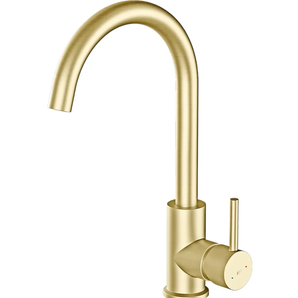 Succombez à la tendance rétro avec le mitigeur de cuisine Kiwo couleur or brossé ! Ce robinet en laiton design de par sa forme, s’inscrit totalement dans le look vintage avec sa couleur cuivrée ! DESIGN ET QUALITE – Couleur : Or brossé – Produit : Robinet mitigeur évier – Corps du robinet : Rond en laiton – Poignée : En métal – Bec : Pivotant – Aérateur anticalcaire : Oui (limite la production de calcaire) – Aérateur économie d’eau : Oui (mélange optimal d’air et d’eau) – Mécanisme : Cartouche à disques céramique 35 mm – Kit de fixation : Système ESSEFIX (fixation facile sans outil) – Alimentation à l’eau : Lyres tressées inox 40 cm inclus DIMENSIONS – Hauteur totale : 335mm – Hauteur sous bec : 240mm – Largeur sortie d’eau/axe du corps : 180mm – Diamètre embase : 50mm NORMES : – Certification ACS : Accréditation de Conformité Sanitaire. GARANTIE : – Corps garanti 5 ans. – Pièces d’usure (poignée, cartouche, flexibles…) garanties 2 ans. Conseils d’utilisation et d’installation : – Avant de procéder au montage, nous vous conseillons de purger soigneusement les tuyauteries d’eau chaude et d’eau froide pour éviter que les saletés et résidus puissent compromettre le bon fonctionnement de la robinetterie. – Après avoir fermé l’alimentation d’eau principale, démonter l’ancienne robinetterie. – Nettoyez soigneusement le filetage des tubes d’alimentation d’eau principale. – Installer le mitigeur de cuisine dans un trou de 35 mm dans un évier ou plan de travail. – Vérifiez que la longueur du bec est compatible avec votre évier (voir dessin technique) Conseils d’entretien : – Pour garder votre robinet le plus longtemps possible, l’idéal est de le nettoyer tous les jours avec un chiffon humide non abrasif ou une microfibre, terminer en essuyant avec une microfibre ou un chiffon sec. – Ne jamais utiliser de solvants, d’éponges métalliques, d’eau de javel, d’acides, de détergents puissants, de produits nettoyants chimiques agressifs ou de solutions de nettoyage à base de solva