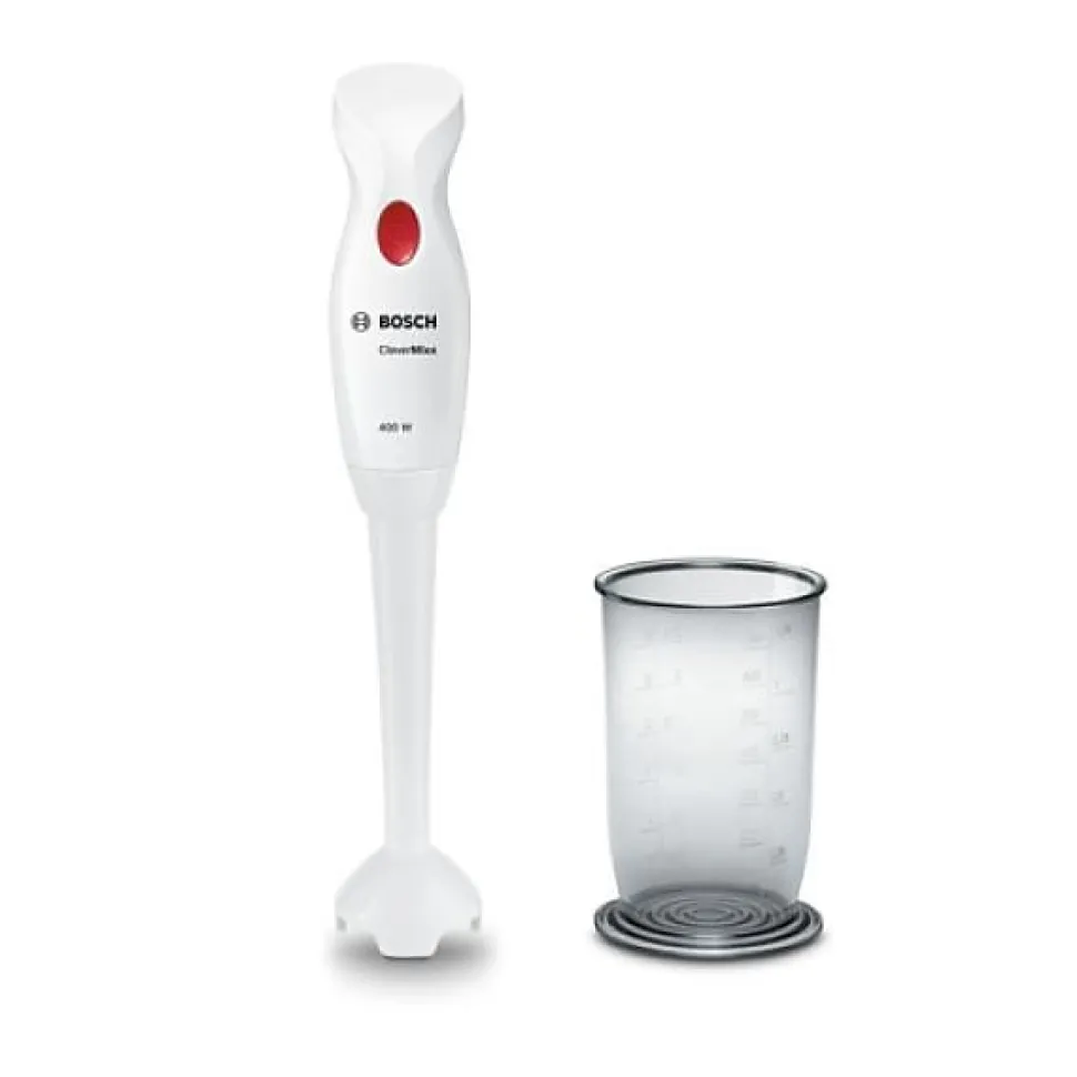 Le mixeur plongeant BOSCH MSM14100 CLEVERMIXX est doté d’un pied mixeur en plastique, de 4 lames aiguisées, d’une poignée ergonomique et d’un bol mixeur. Avec sa puissance de 400W et sa vitesse unique, il est idéal pour mixer rapidement et facilement. Compatible lave-vaisselle, il est facile a nettoyer.