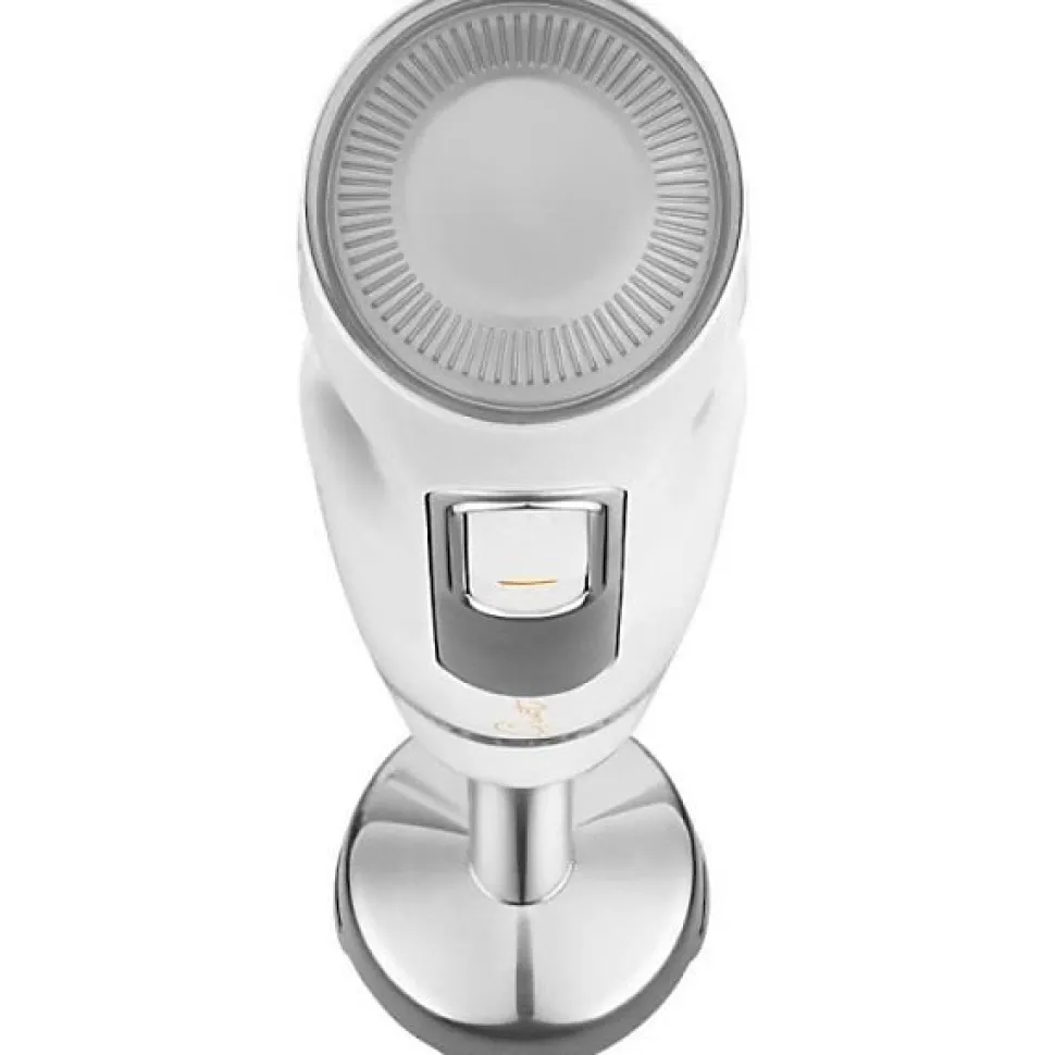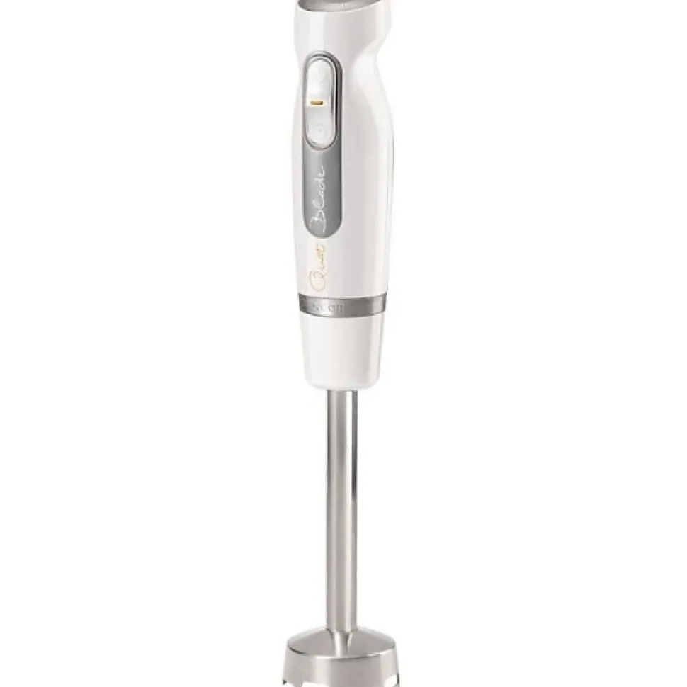- Pied mélangeur amovible en acier inoxydable en forme de cloche avec ouvertures pour un mixage efficace et résistant aux aliments chauds.