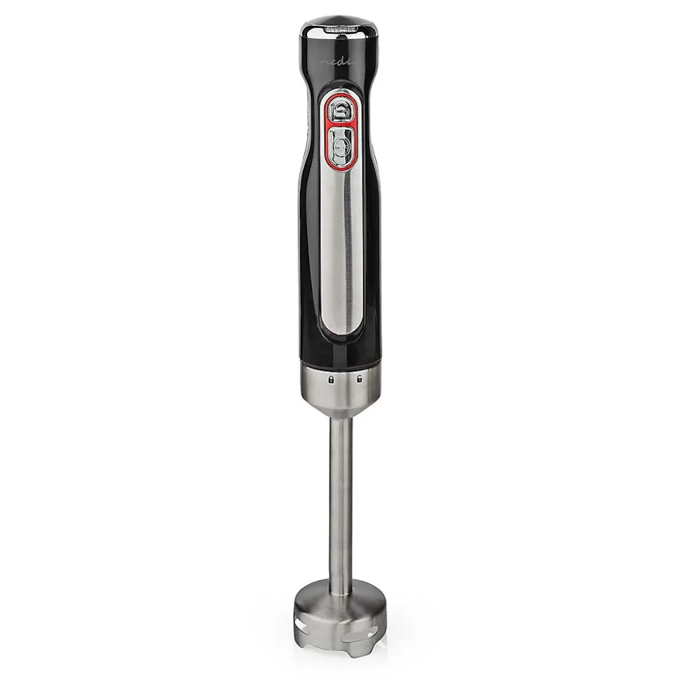 Description du produit :Ce mixeur plongeant sans fil Nedis vous offre une liberté de mouvement maximale. Idéal pour préparer soupes, milkshakes, sauces et autres recettes sans être gêné par un cordon d’alimentation. De conception élégante et légère, il est sans fil et facile à utiliser d’une seule main. La version à vitesse unique offre une vitesse de pointe de 13 000 tr/min, ce qui garantit des résultats lisses et homogènes.La batterie lithium-ion rechargeable offre une autonomie et des performances optimales, et se charge en seulement 2 heures. Un voyant LED à code couleur indique quand il est temps d’effectuer une recharge.Le bras de mélange en acier inoxydable est également assez long pour les plats profonds. Fourni en pack complet avec un support pour ranger le mixeur.Caractéristiques : Mixeur plongeant sans fil pour soupes, sauces et smoothies Mélange efficace partout Se charge pendant 2 heures et fonctionne pendant 13 minutes Conception légère et ergonomique à une seule vitesse Verrouillage et bouton marche/arrêt Indicateur d’état à LED de couleur Bras et lames en acier inoxydableContenu de l’emballage :Mixeur PlongeantSupportAdaptateurManuel