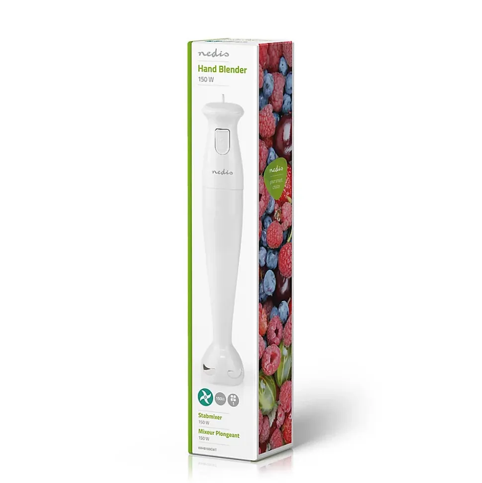 Facile à utiliser : d’une simple pression sur un bouton, le puissant moteur de 150 W c.a. se met à tourner. Avec ses lames aiguisées, il coupe facilement les fruits et légumes en un rien de temps. Grâce à sa conception compacte, il se range facilement dans un tiroir. Avec son cordon de 1 m de longueur et son bouton de commande unique, il offre souplesse et facilité d’utilisation. Sa conception pratique vous permet de mixer directement dans un bol, dans une casserole ou dans un pichet. Facile à nettoyer en le rinçant sous le robine.Caractéristiques• Mixeur plongeant simple mais efficace pour les milk-shakes, les soupes et les sauces• Lames ultra-aiguisées• Un résultat impeccable grâce à une puissance de 150 watts• Facile à utiliser et à tenir• Conception compacte et facile à ranger dans un tiroir