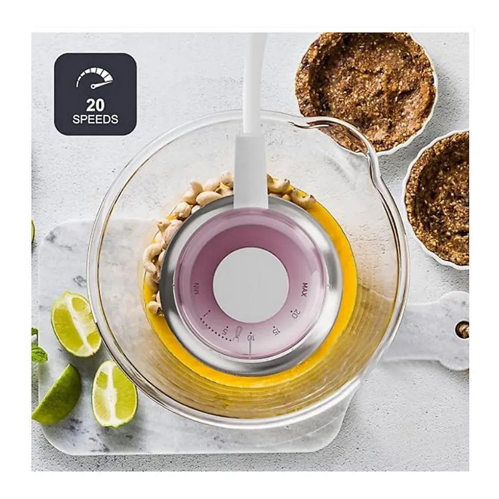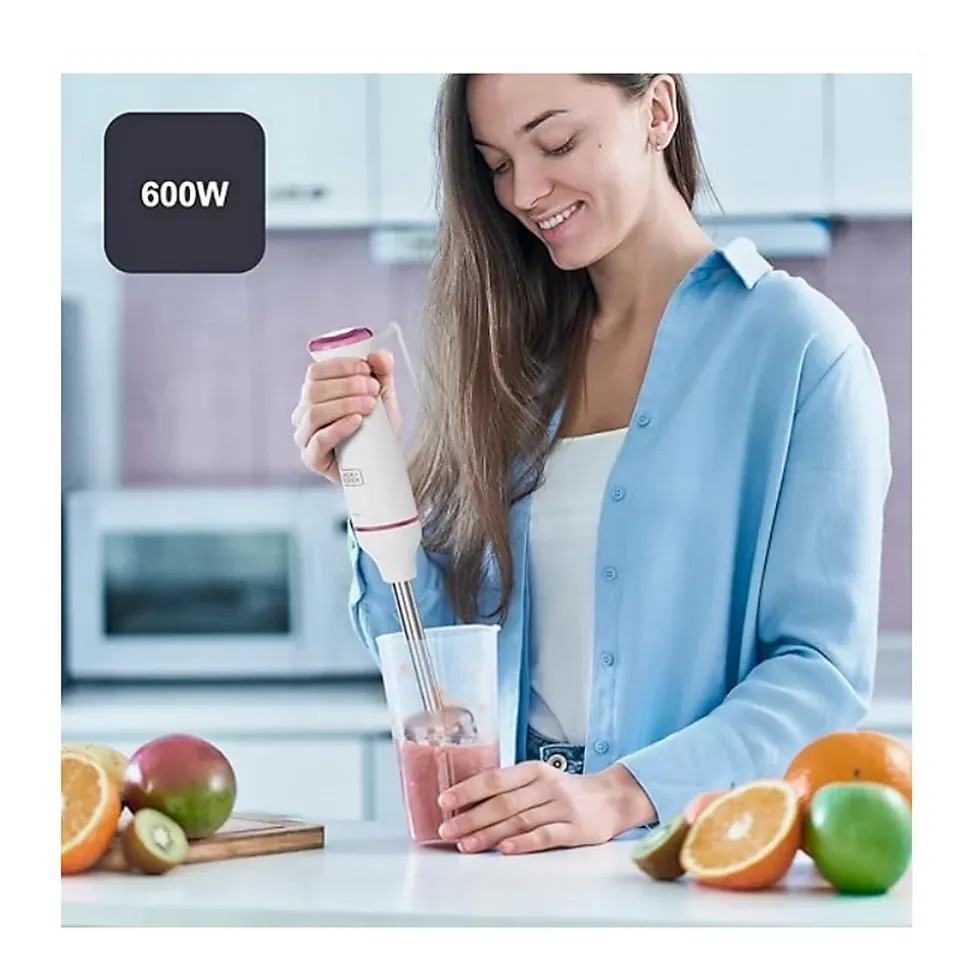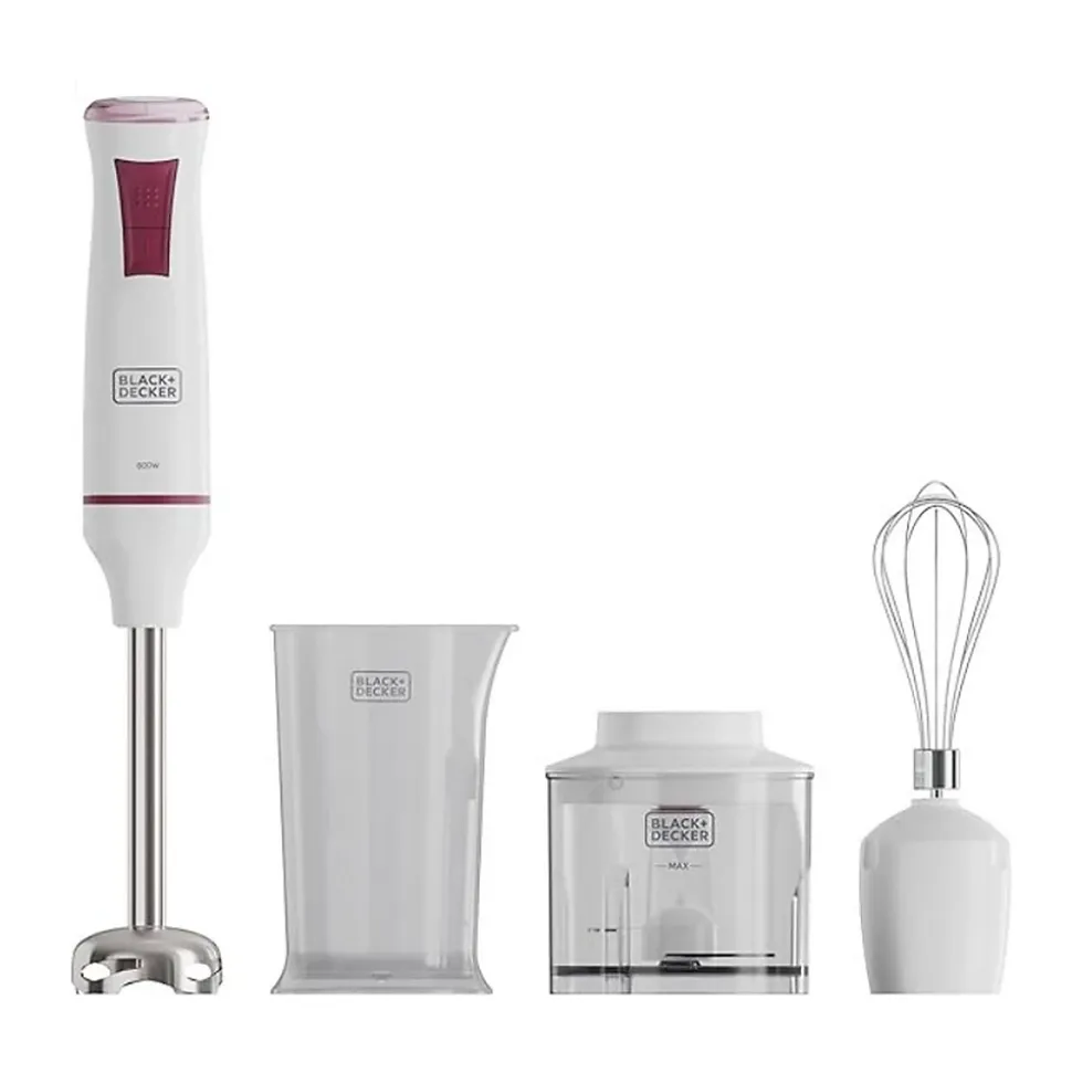 Mixeur plongeant 600w Black+decker – Un mixeur plongeant BXHBA601E de Black+decker pratique et fonctionnel, idéal pour préparer toutes sortes de soupes, purées et compotes avec des textures lisses et homogènes en un rien de temps. Grâce à ses accessoires, vous pourrez mixer, hacher, émulsionner et broyer pour réaliser une infinité de recettes. Choisissez parmi ses 20 vitesses réglables ou activez la fonction turbo pour obtenir la texture parfaite. De plus, il est doté d’une cloche spécialement conçue pour éviter les éclaboussures, gardant votre cuisine propre et rendant son utilisation encore plus agréable. Moteur de 600W et lames en acier inoxydable performantes pour mixer et broyer rapidement, même les aliments les plus durs, avec des résultats uniformes. Préparez des soupes, purées, compotes et émulsions aux textures homogènes grâce à ses 20 vitesses ajustables et sa fonction turbo pour un résultat professionnel. La cloche spécialement conçue réduit les éclaboussures pendant l’utilisation, gardant votre cuisine propre et améliorant votre expérience. Fabriqué avec des matériaux durables sans BPA, il offre un design ergonomique et pratique pour un usage quotidien confortable et sûr. Livré avec des accessoires amovibles compatibles avec le lave-vaisselle, sans BPA et faciles à assembler, pour une commodité et une sécurité maximales. – Type de produit : Mixeur plongeant.Puissance : 600 W.Fonctions : Broyer, Mixer, Turbo.Cuve amovible : Oui.Nombre de vitesses : 1.Fonction d’impulsion : Non.Parties lavables au lave vaisselle : Oui.Longueur du cable : 1,2 m.Matériel du bol : Plastique.Matériel : Plastique, Acier inoxydable.Matériau de la lame : Acier inoxydable.Fréquence d’entrée AC : 50/60 Hz.Couleur : Blanc, Rouge.Dimensions du produit : 6 x 6 x 38.5Poids de l’article : ?1.27 Kilograms.