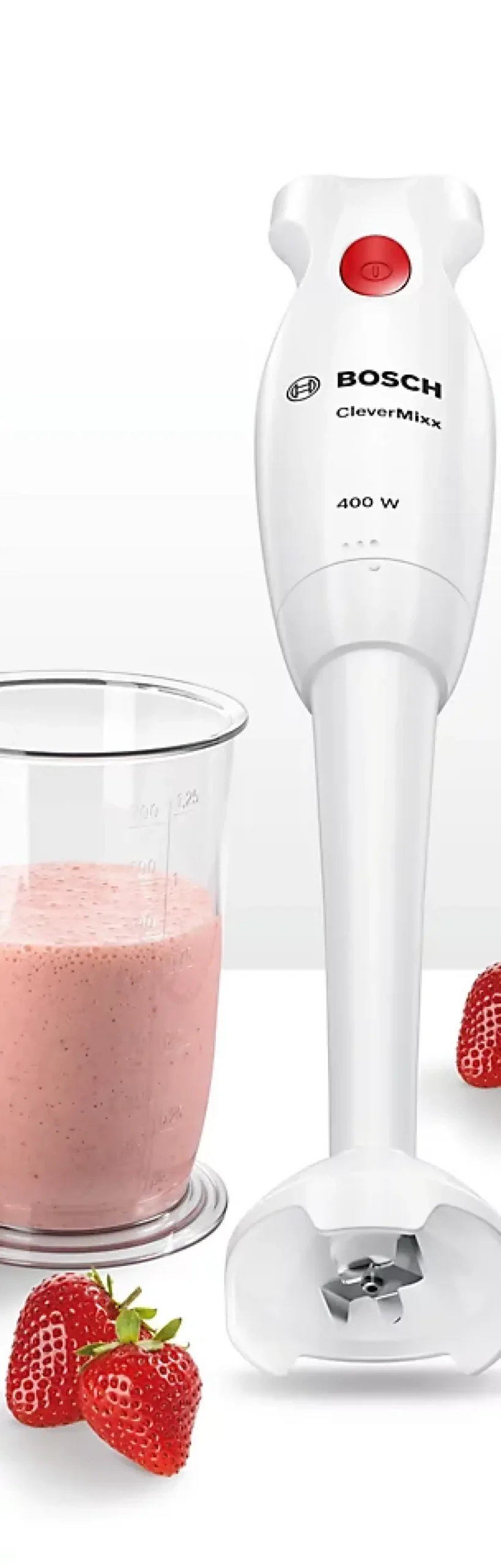 Le mixeur plongeant BOSCH MSM14100 CLEVERMIXX est doté d’un pied mixeur en plastique, de 4 lames aiguisées, d’une poignée ergonomique et d’un bol mixeur. Avec sa puissance de 400W et sa vitesse unique, il est idéal pour mixer rapidement et facilement. Compatible lave-vaisselle, il est facile a nettoyer.