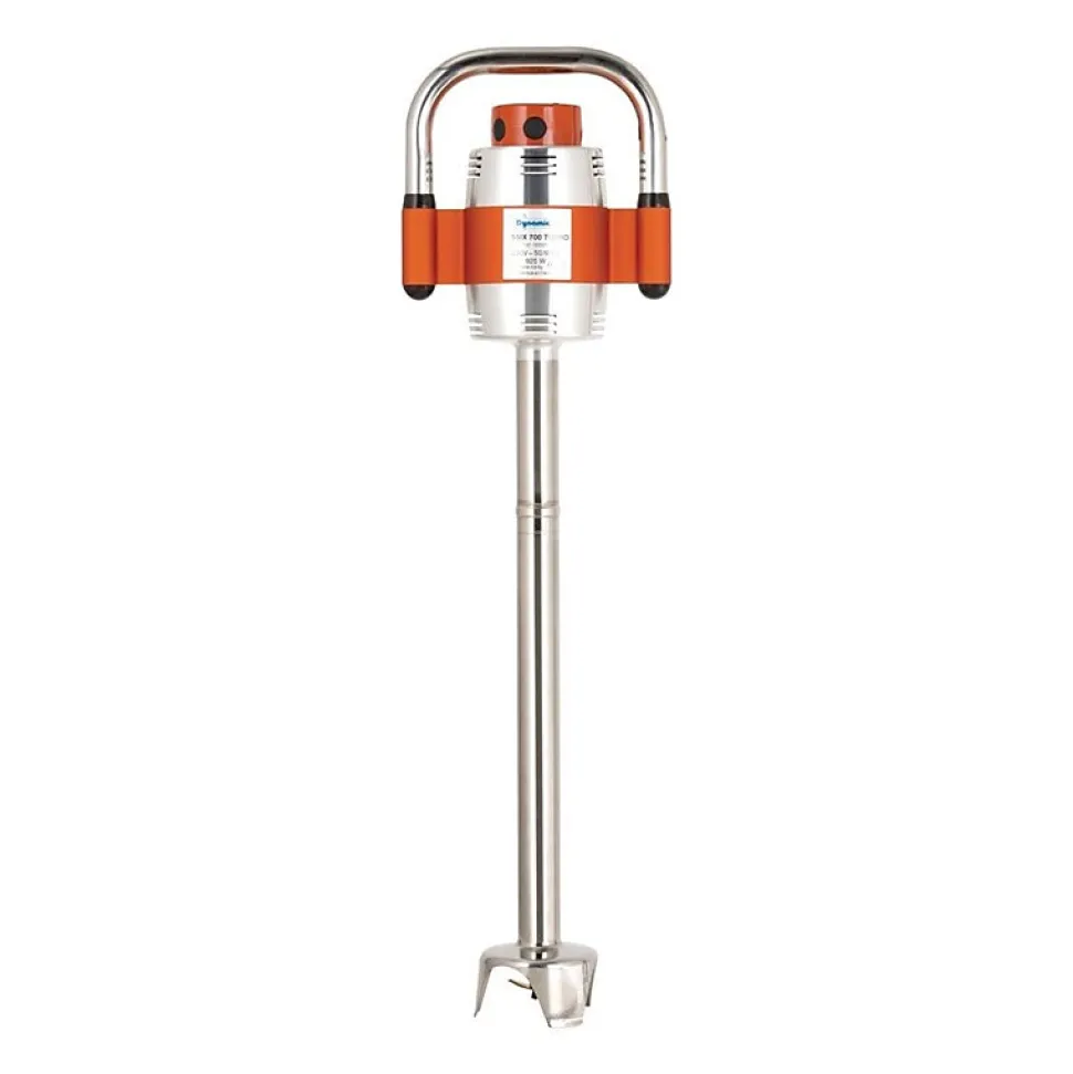 Le mixeur plongeant Dynamic SMX 700 Turbo est conçu pour traiter de grands volumes. Grâce à sa vitesse de 9 500 tr/min et à son pied démontable de 600 mm, il permet de mixer efficacement 75 à 300 litres de potages, soupes, sauces ou préparations liquides.Robuste et ergonomique, il est équipé d’une lame et d’un axe en inox ainsi que d’une poignée en caoutchouc assurant confort et maîtrise en usage intensif. Alimenté en 230V, ce modèle de 6,5 kg s’intercale parfaitement au cœur de la gamme SMX pour offrir un équilibre optimal entre puissance et maniabilité en restauration collective et grande production. #html-body [data-pb-style=GCHG5K1]{justify-content:flex-start;display:flex;flex-direction:column;background-position:left top;background-size:cover;background-repeat:no-repeat;background-attachment:scroll}Mixeur plongeant Dynamic SMX 700 TurboPlus puissant qu’un modèle 600 mm standard et plus maniable qu’un 800 mm, le mixeur plongeant SMX 700 Turbo offre un équilibre optimal entre capacité, ergonomie et performance pour les établissements de restauration collective, traiteurs, cuisines centrales et grandes brigades.Grâce à sa longueur de pied de 600 mm et à sa puissance élevée, ce <a href= »http