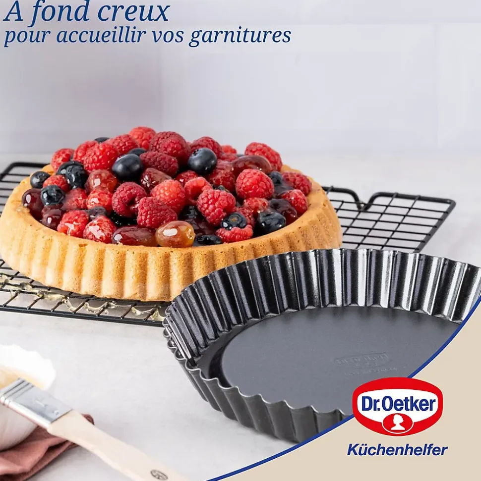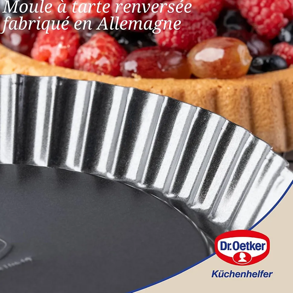 - DESCRIPTION : Le moule à tarte renversée antiadhésif Dr Oetker offre une excellente conductivité thermique, et vous assure une cuisson optimale de vos tartes sucrées ou salés et de vos gâteaux