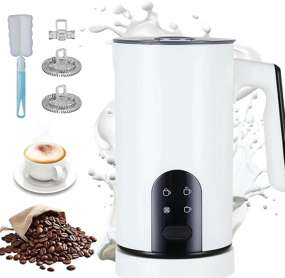 Ce mousseur à lait 4-en-1 offre une polyvalence exceptionnelle pour préparer facilement mousse chaude fine, mousse chaude crémeuse, mousse froide ou lait chauffé. Son fonctionnement ultra-silencieux, inférieur à 30 dB, permet une utilisation discrète à toute heure, tandis que l’arrêt automatique garantit une sécurité optimale. Capable de chauffer jusqu’à 350 mL et de mousser 160 mL, il assure des résultats rapides et homogènes en moins de deux minutes selon le mode choisi. Conçu en acier inoxydable alimentaire avec un revêtement sûr et durable, il résiste à la corrosion et assure une hygiène parfaite au quotidien. Son utilisation est intuitive grâce à son bouton unique, sa poignée antidérapante et ses repères de niveau bien visibles. Le pichet amovible facilite le service et passe au lave-vaisselle pour un nettoyage sans effort. Livré avec deux mousseurs, un agitateur et une brosse, il constitue un ensemble complet idéal pour réaliser chez soi cappuccinos, lattes, chocolats chauds ou boissons froides avec une texture professionnelle.