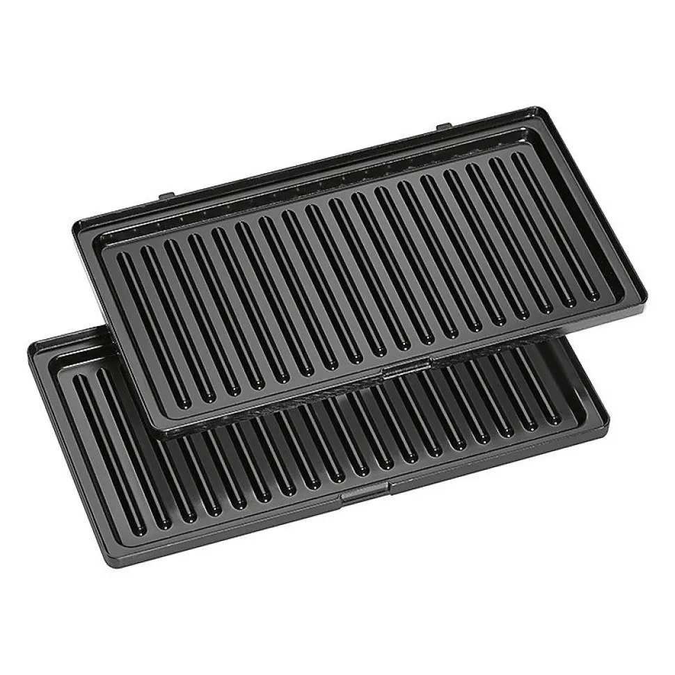Grilleur de sandwichs, gaufrier et gril de contactUtilisation polyvalente grâce à trois plaques amovibles différentes (plaques à sandwich, à gaufre et à gril),par exemple, pour les gaufres belges et les savoureuses variantes de sandwichs, ainsi que pour le gril de contact rapide à double face.Insert en acier inoxydablePlaques de cuisson à revêtement anti-adhésif et interchangeablesPoignée isolée de la chaleur2 témoins lumineux pour l’alimentation et le chauffage (témoins de cuisson)Support sûr grâce aux pieds caoutchoutésSystème de verrouillageProtection contre la surchauffe220-240 V, 50/60 Hz, 800 W